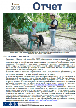 В отчете представлен обзор работы Специальной мониторинговой миссии ОБСЕ (СММ), последние события и новости по состоянию на 9 июля 2018 года.