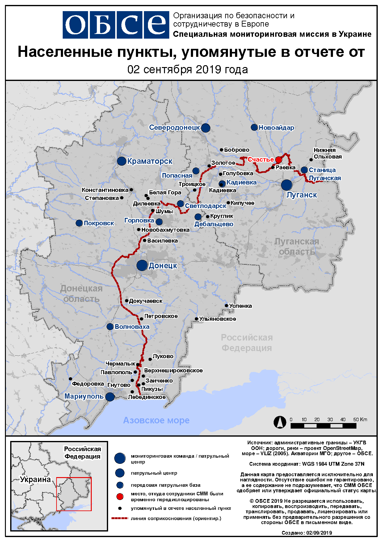 Ежедневный отчет № 207/2019, опубликованный Специальной мониторинговой миссией ОБСЕ в Украине (СММ) 2 сентября 2019 года