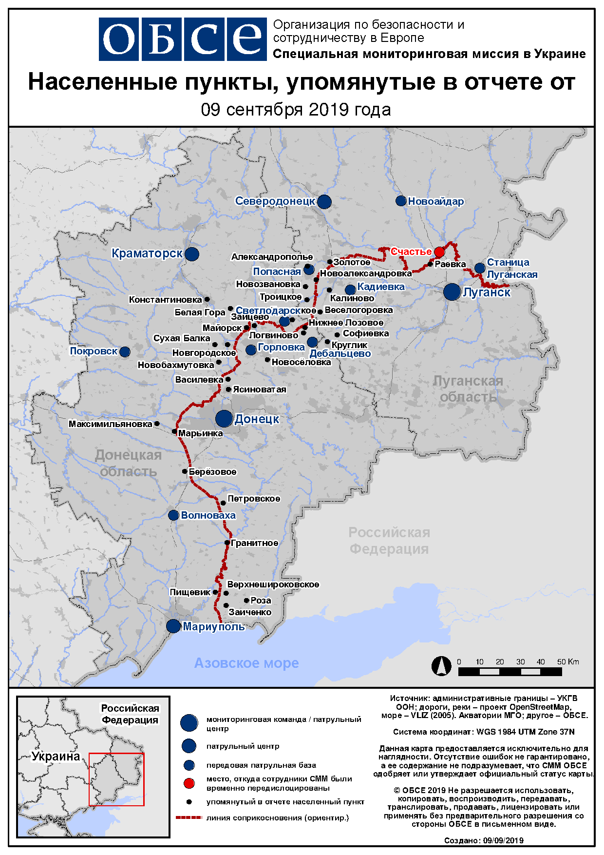 Ежедневный отчет № 213/2019, опубликованный Специальной мониторинговой миссией ОБСЕ в Украине (СММ) 9 сентября 2019 года