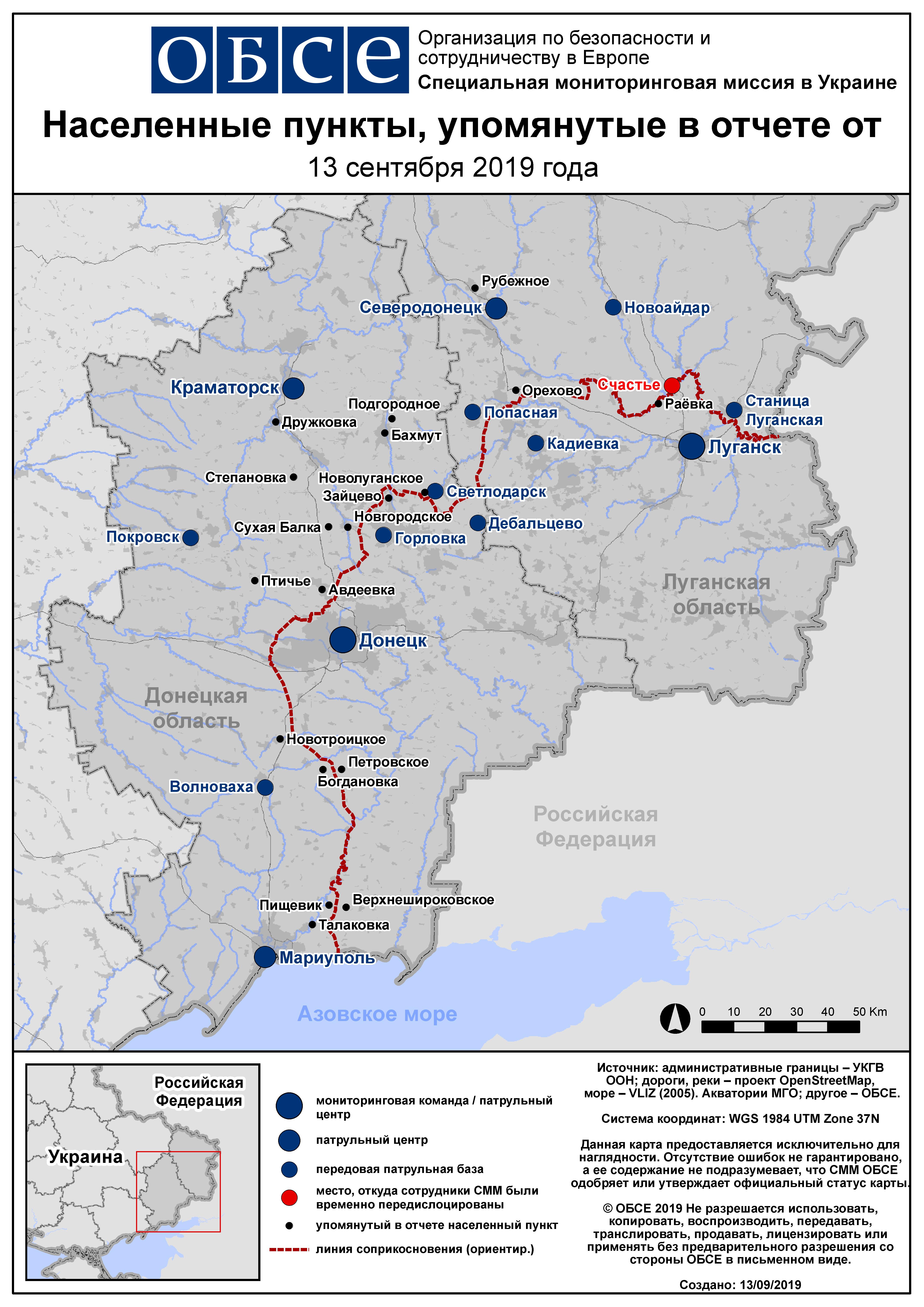 Ежедневный отчет № 217/2019, опубликованный Специальной мониторинговой миссией ОБСЕ в Украине (СММ) 13 сентября 2019 года