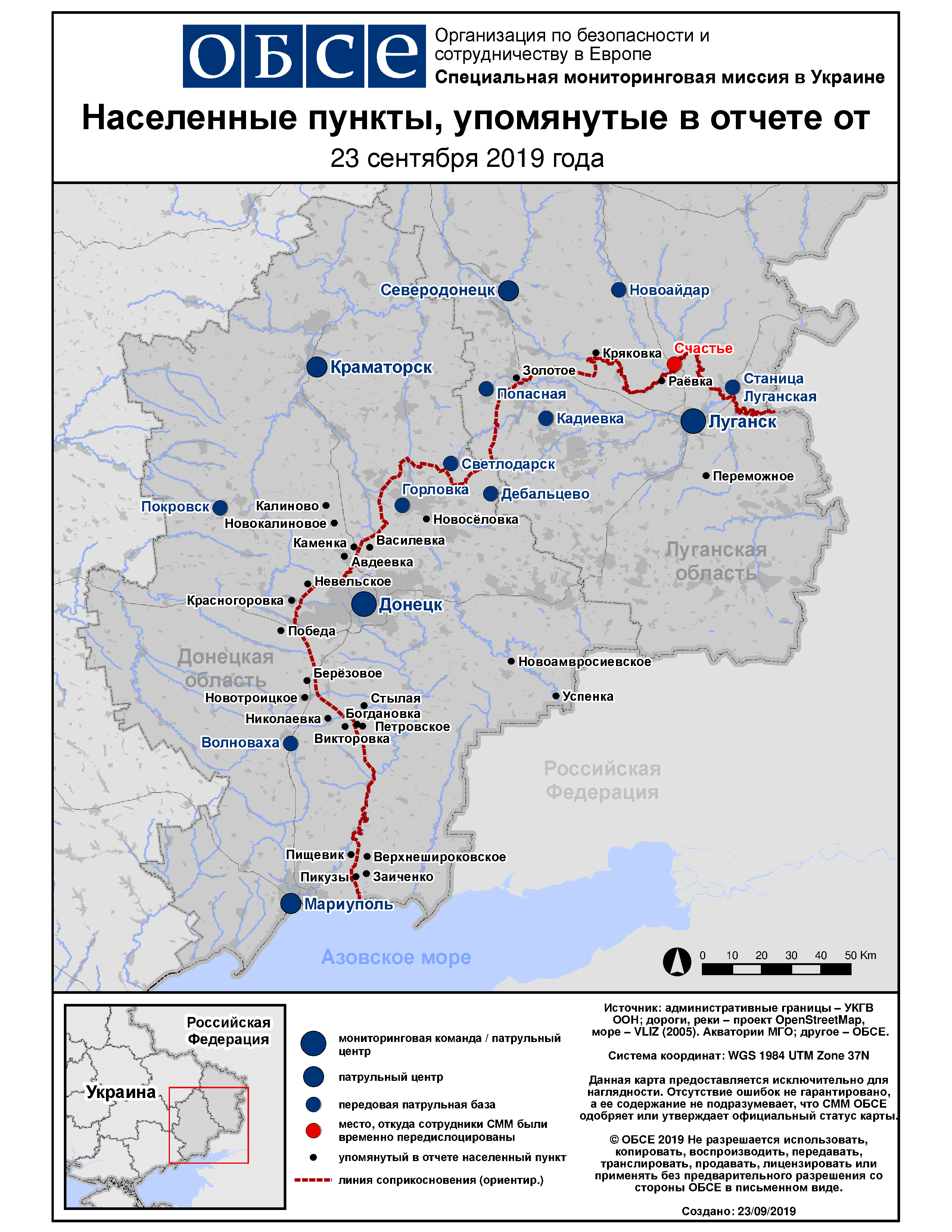 Ежедневный отчет № 225/2019, опубликованный Специальной мониторинговой миссией ОБСЕ в Украине (СММ) 23 сентября 2019 года