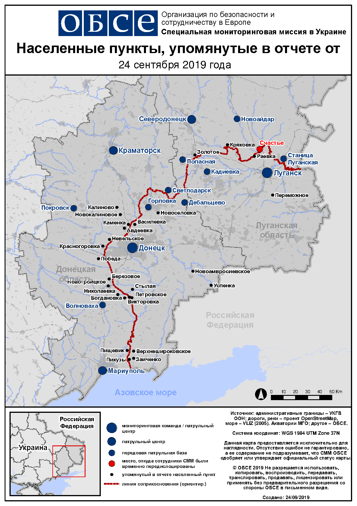 Ежедневный отчет № 226/2019, опубликованный Специальной мониторинговой миссией ОБСЕ в Украине (СММ) 24 сентября 2019 года