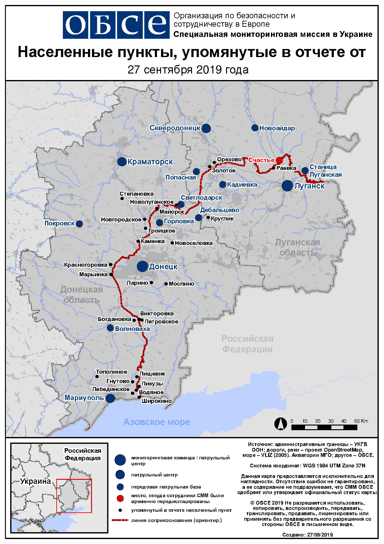 На основании информации, поступившей от мониторинговых команд по состоянию на 19:30 26 сентября 2019 года (по восточноевропейскому летнему времени)