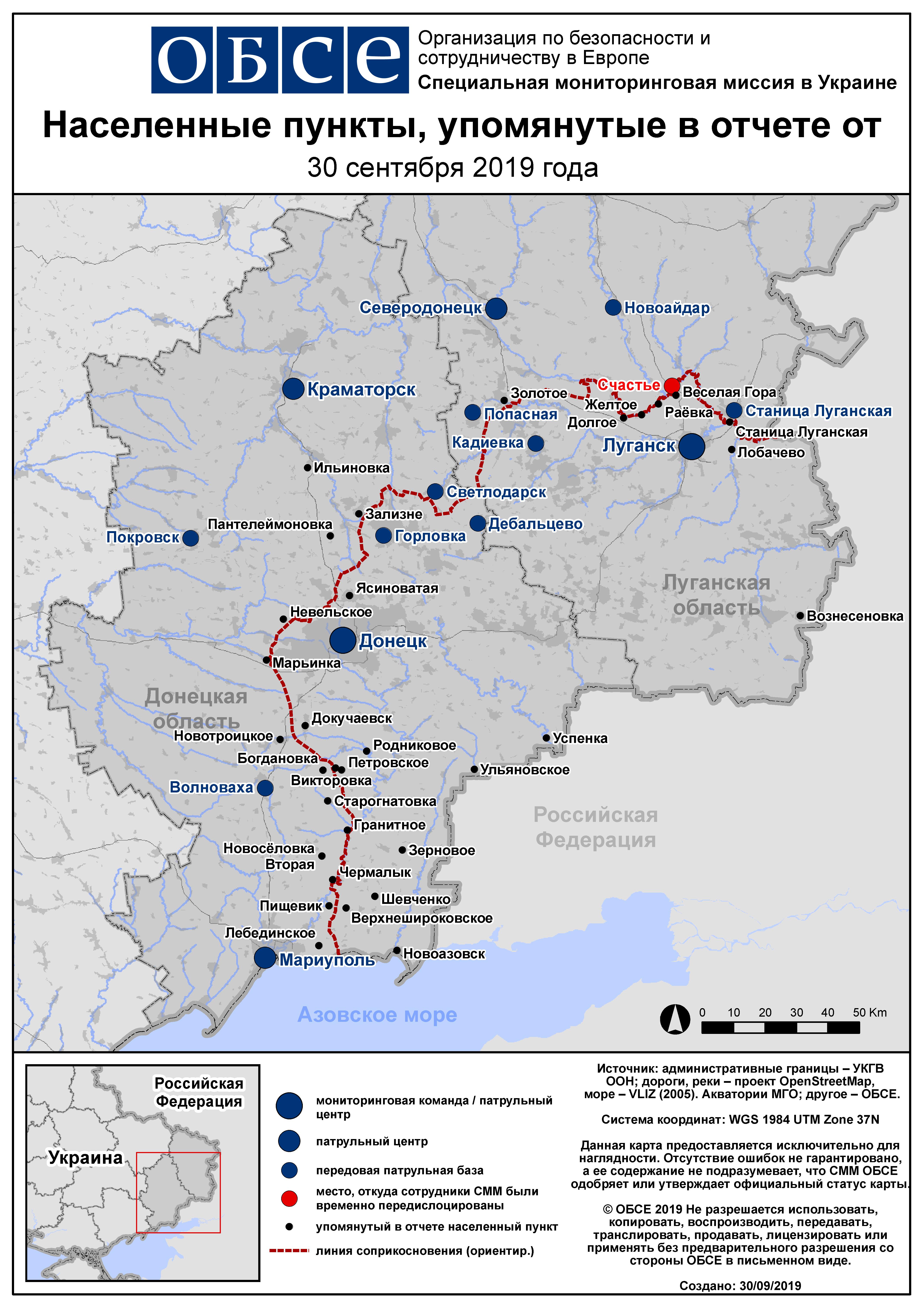 На основании информации, поступившей от мониторинговых команд по состоянию на 19:30 29 сентября 2019 года (по восточноевропейскому летнему времени)