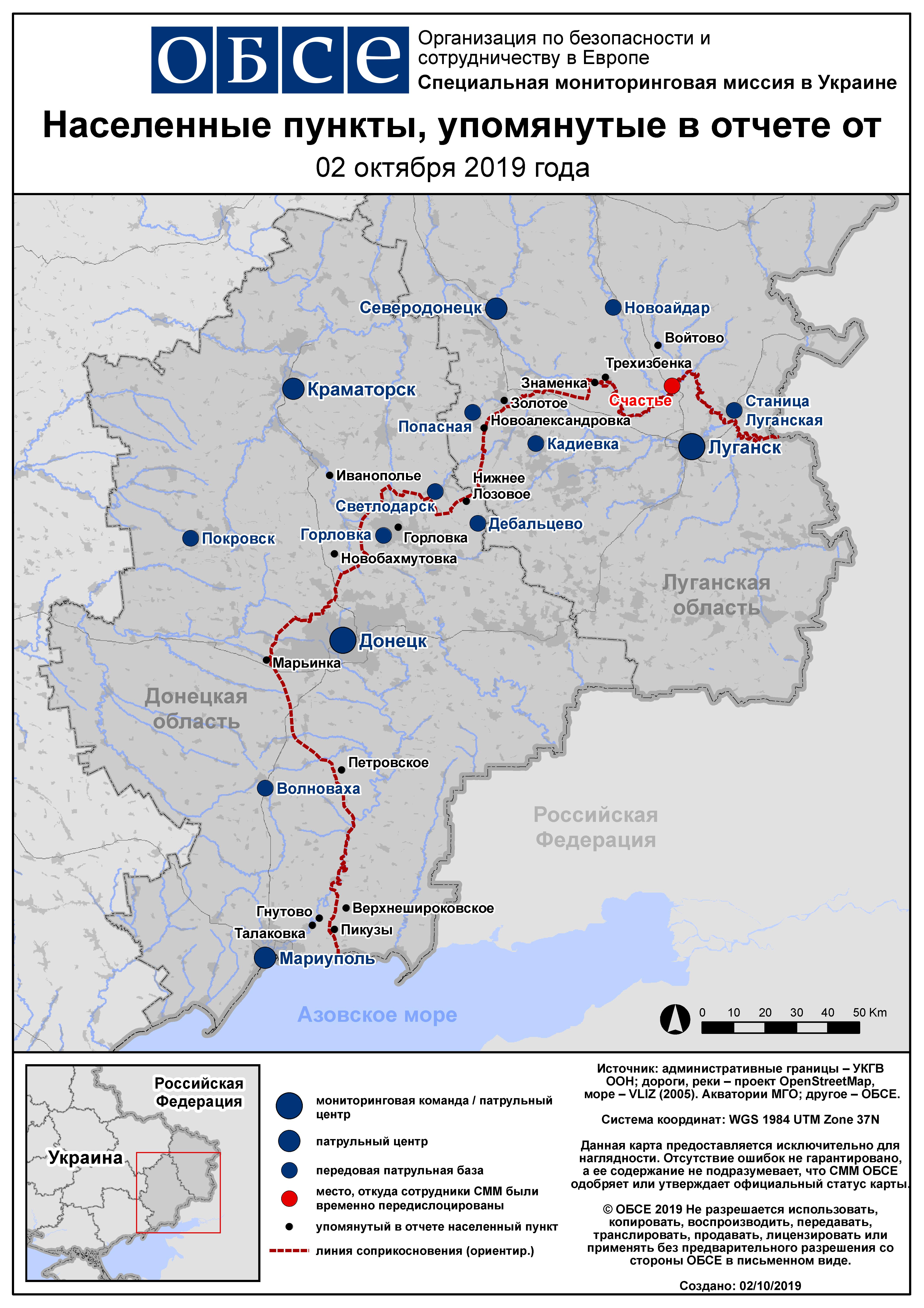 Ежедневный отчет № 233/2019, опубликованный Специальной мониторинговой миссией ОБСЕ в Украине (СММ) 2 октября 2019 года