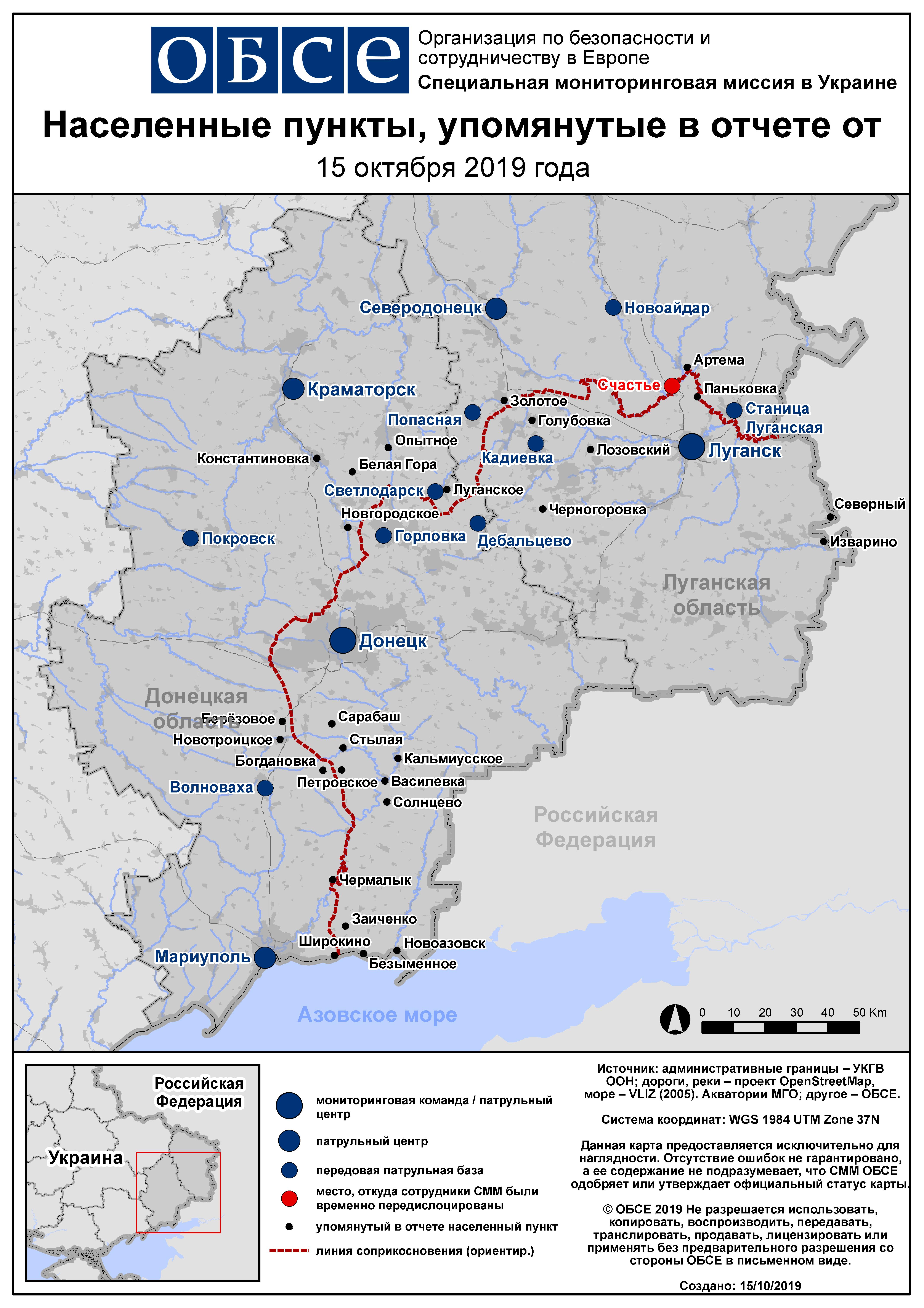 Ежедневный отчет № 244/2019, опубликованный Специальной мониторинговой миссией ОБСЕ в Украине (СММ) 15 октября 2019 года