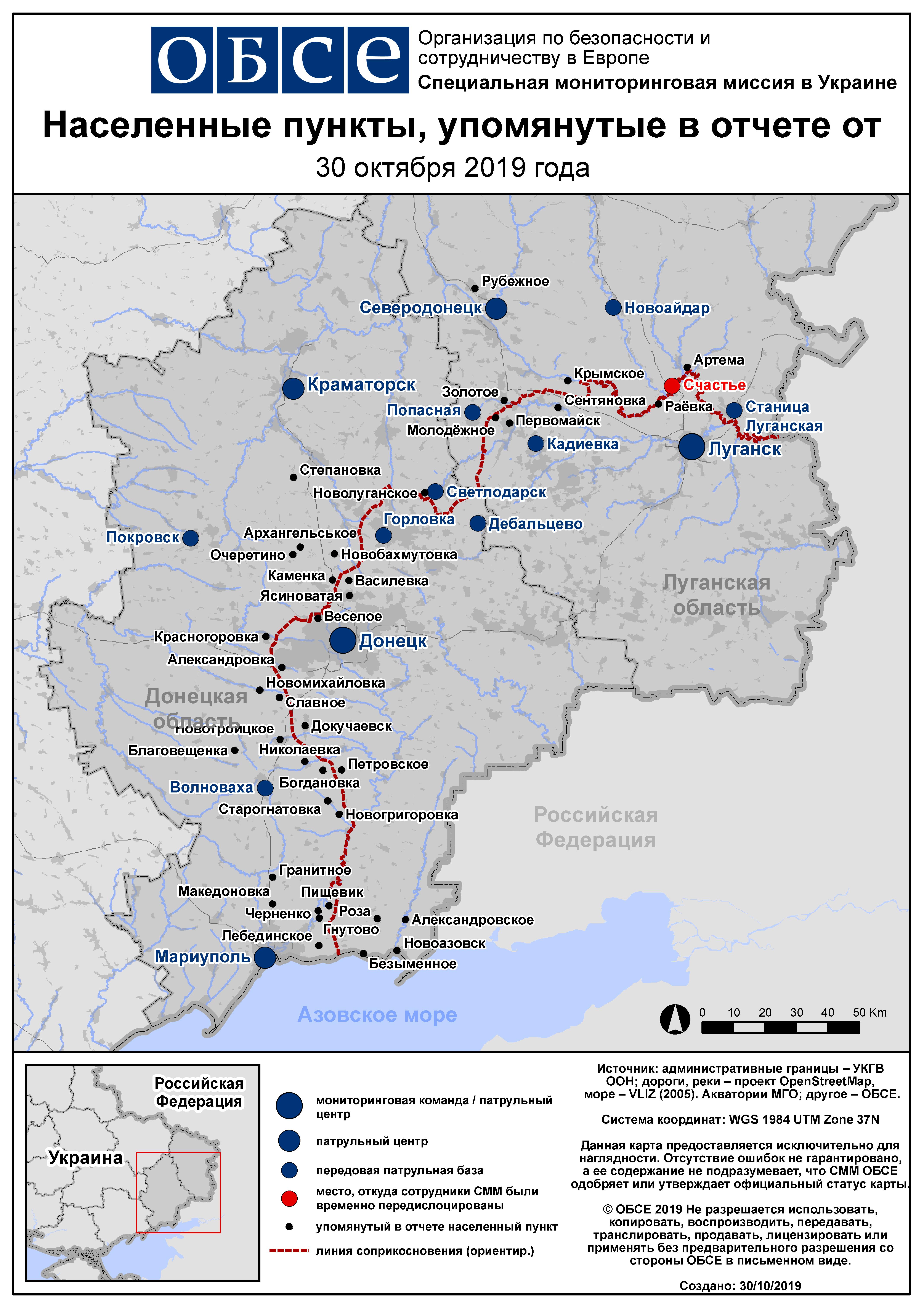 Ежедневный отчет № 257/2019, опубликованный Специальной мониторинговой миссией ОБСЕ в Украине (СММ) 30 октября 2019 года