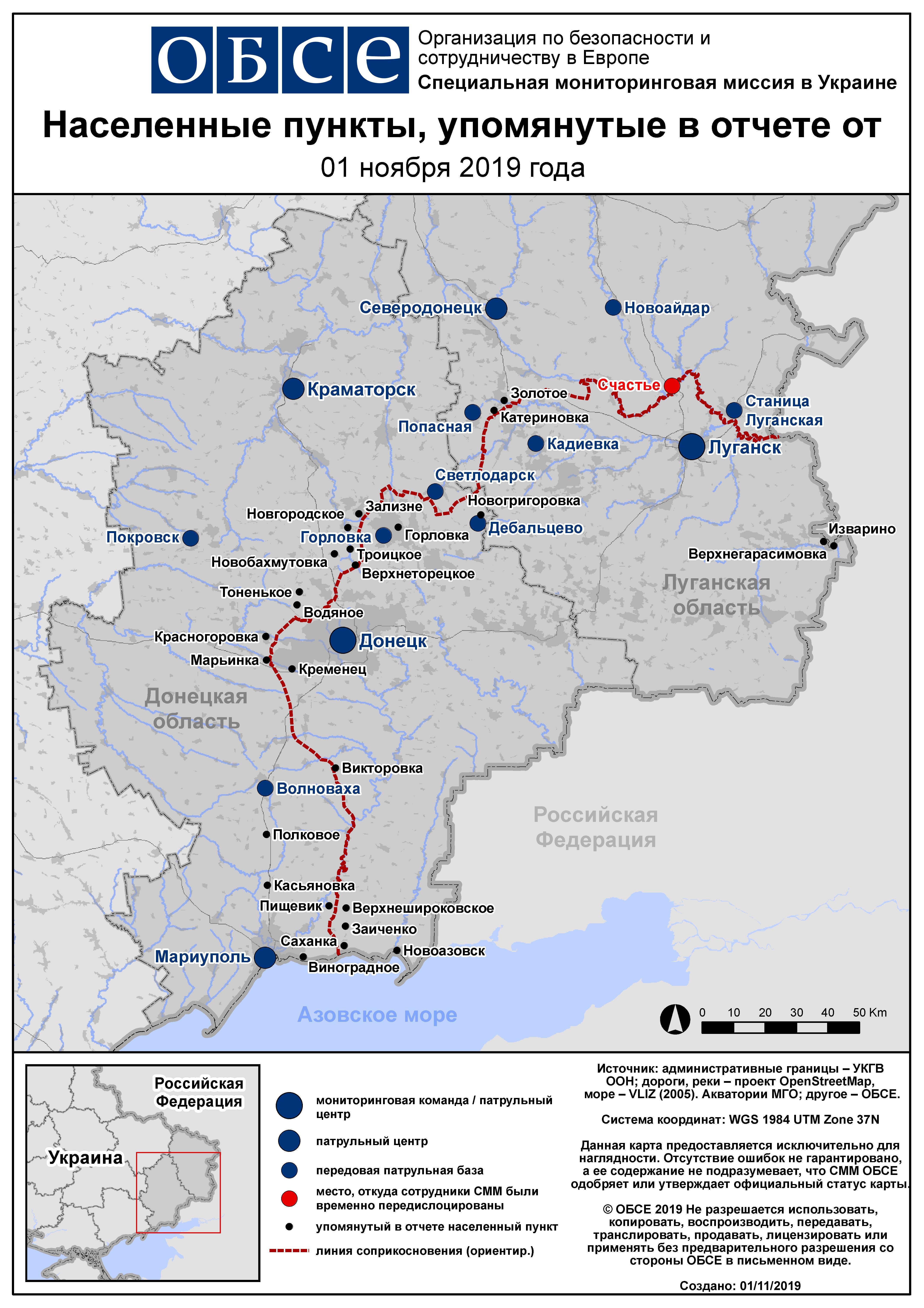 Ежедневный отчет № 259/2019, опубликованный Специальной мониторинговой миссией ОБСЕ в Украине (СММ) 1 ноября 2019 года