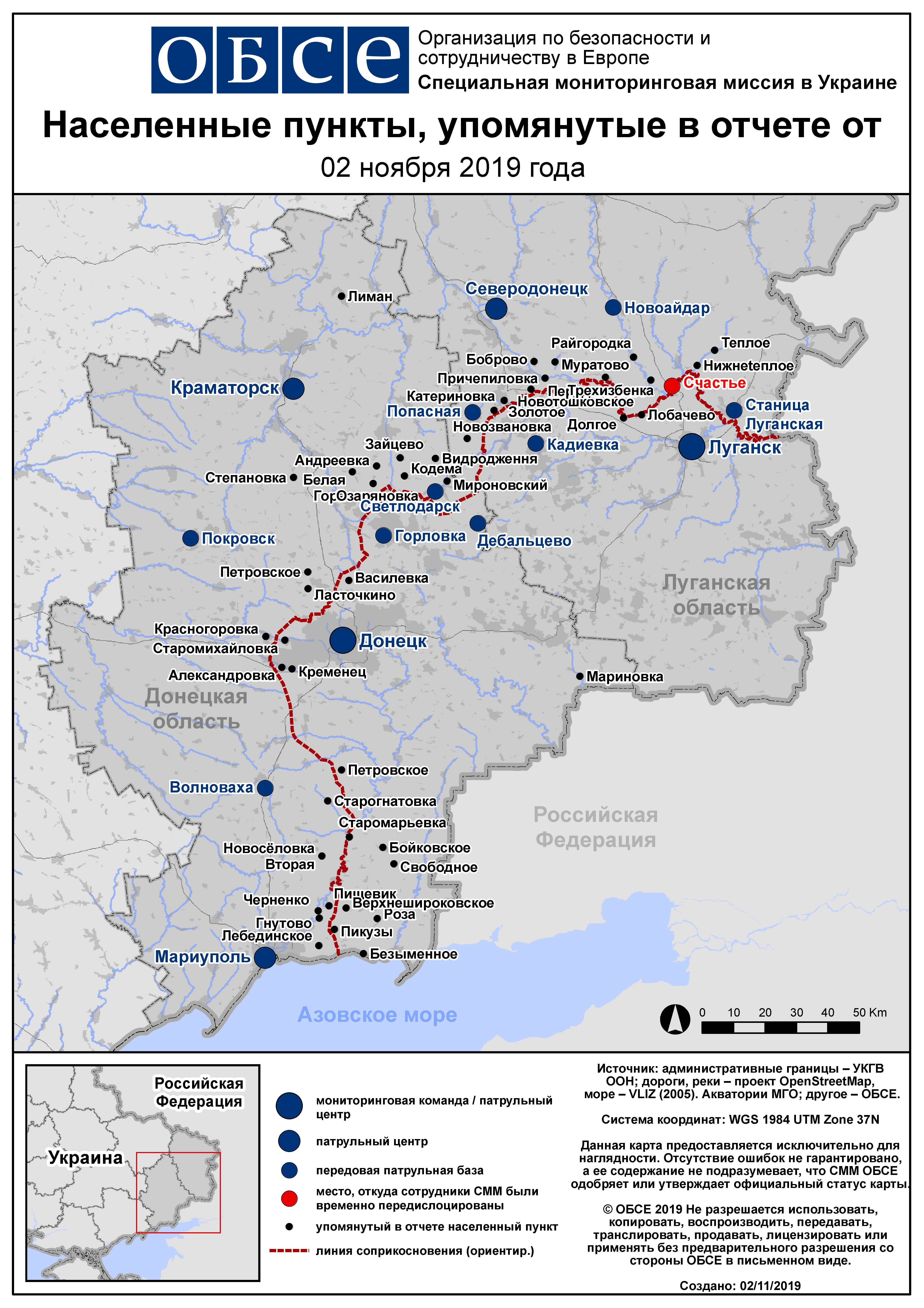 На основании информации, поступившей от мониторинговых команд по состоянию на 19:30 1 ноября 2019 года (по восточноевропейскому времени)