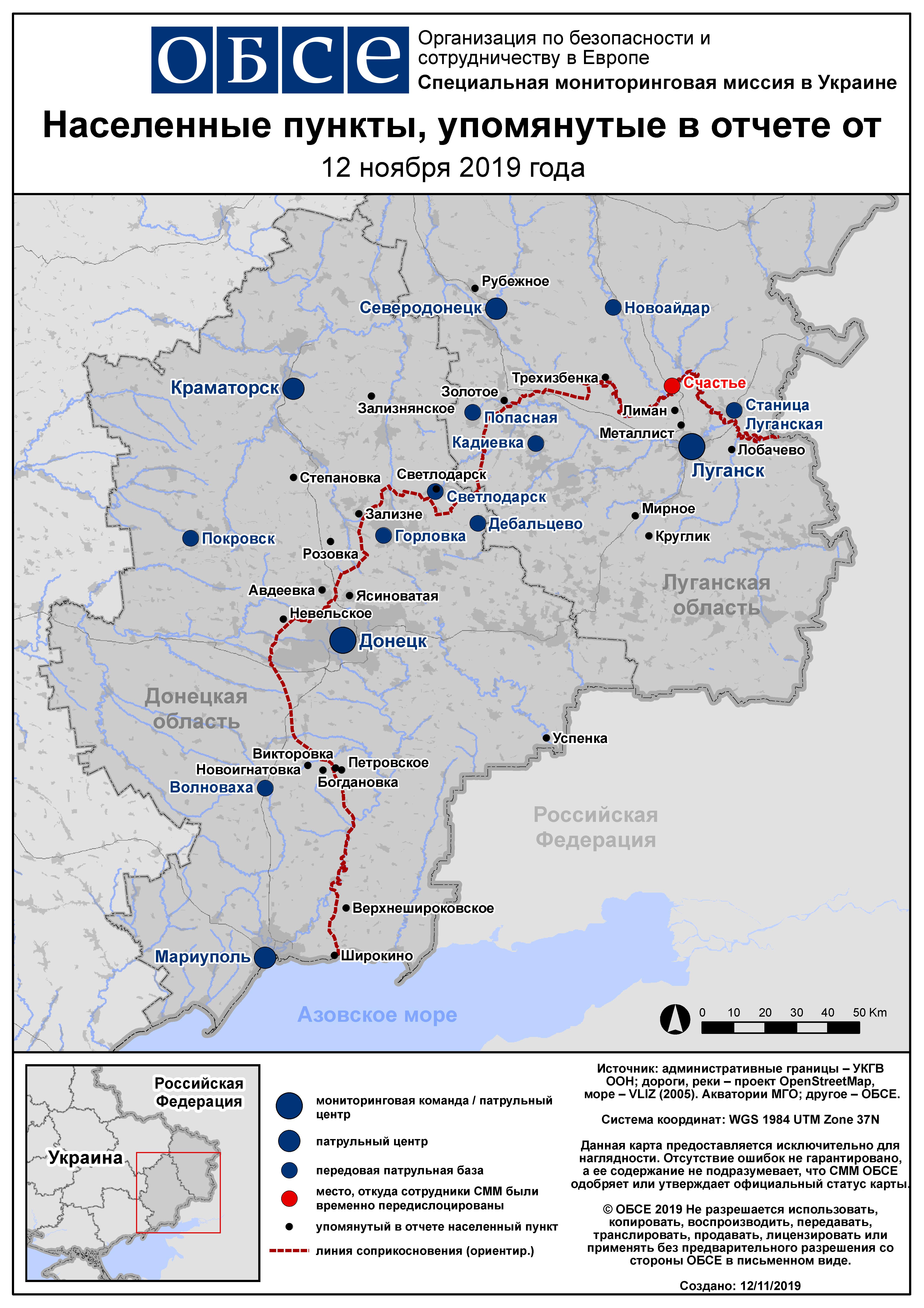 Ежедневный отчет № 268/2019, опубликованный Специальной мониторинговой миссией ОБСЕ в Украине (СММ) 12 ноября 2019 года
