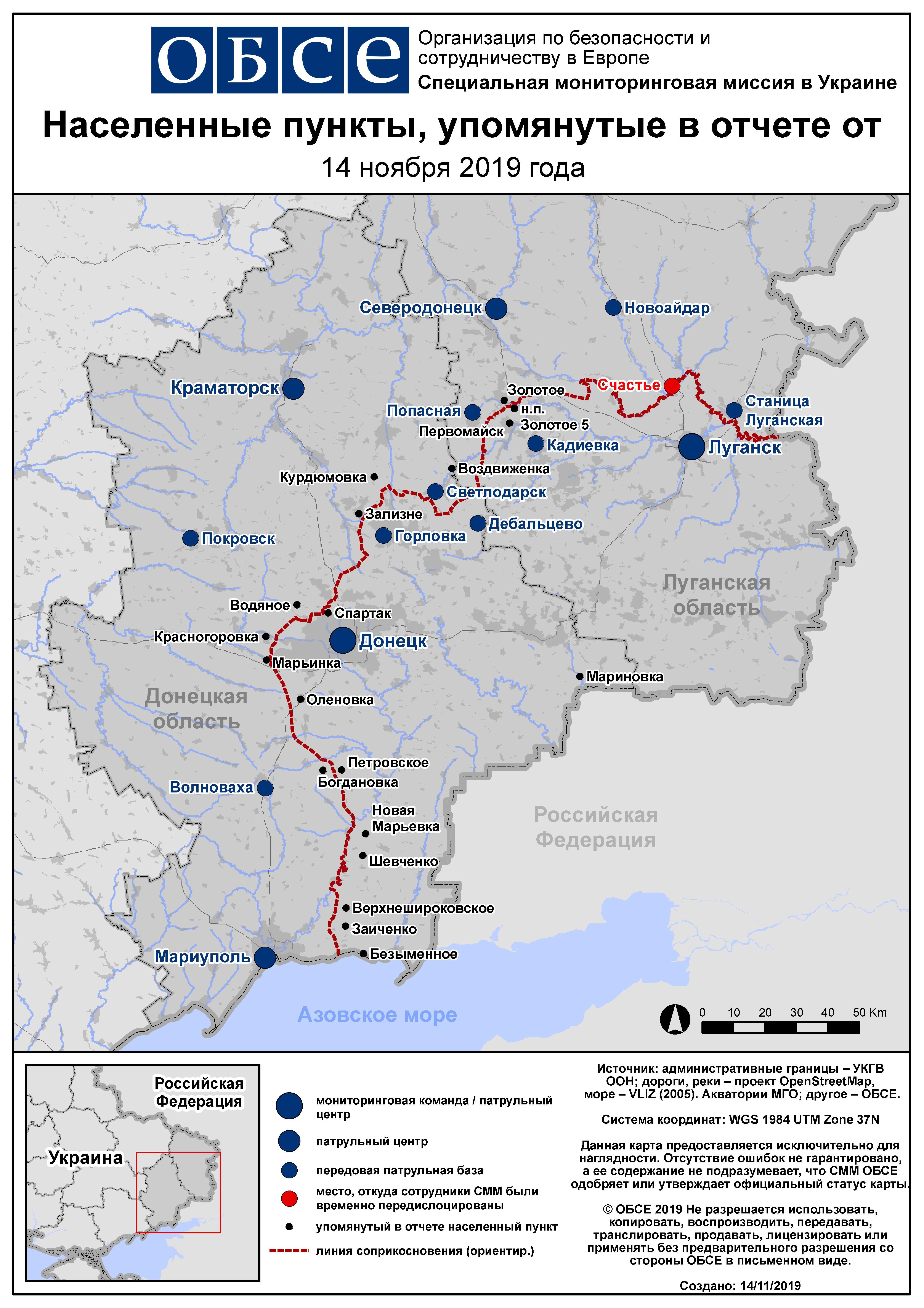 Ежедневный отчет № 270/2019, опубликованный Специальной мониторинговой миссией ОБСЕ в Украине (СММ) 14 ноября 2019 года