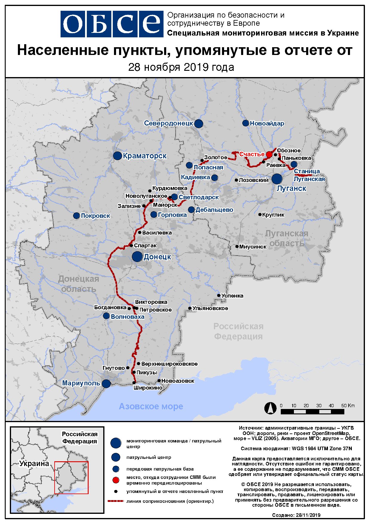 Ежедневный отчет № 282/2019, опубликованный Специальной мониторинговой миссией ОБСЕ в Украине (СММ) 28 ноября 2019 года