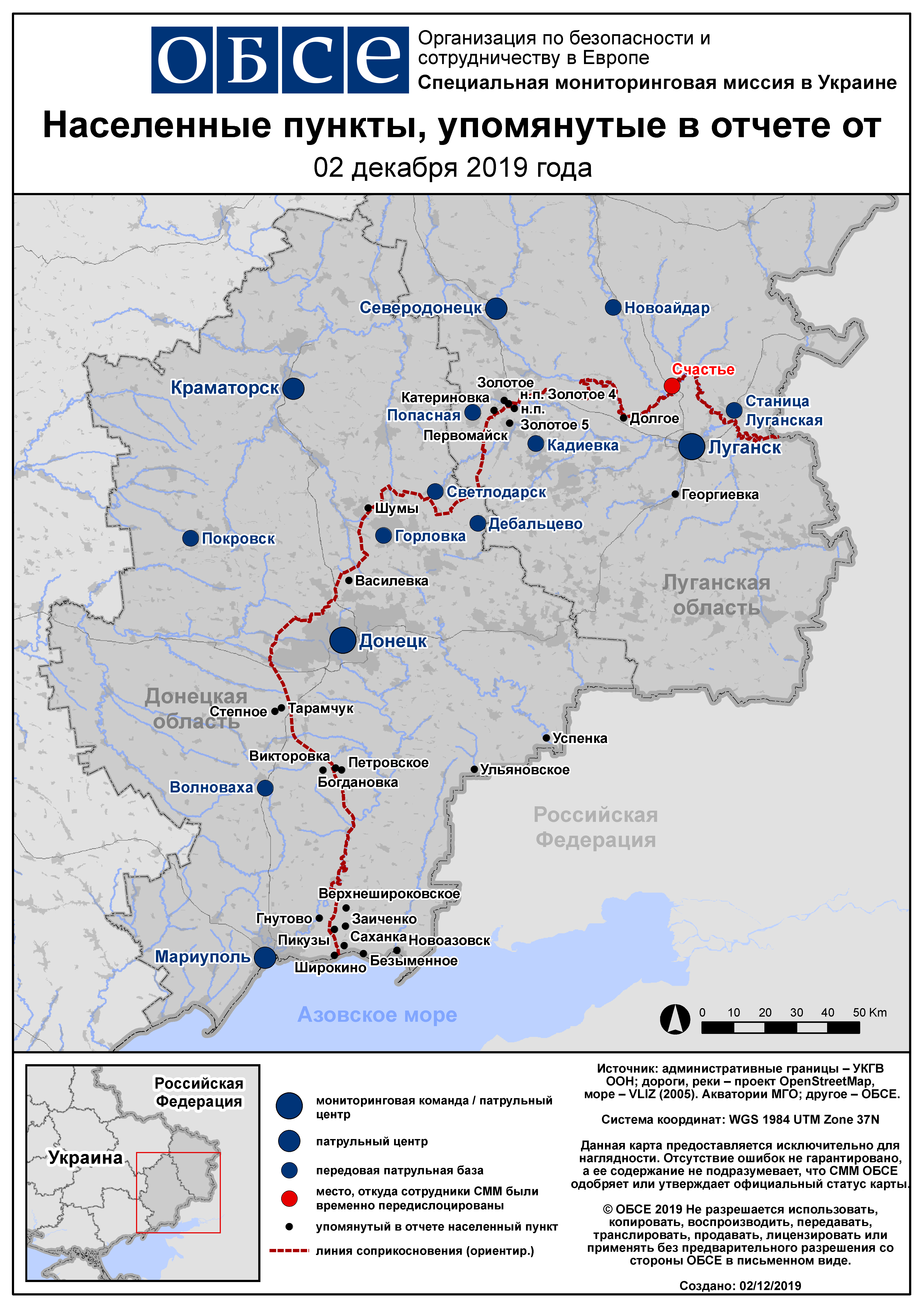 На основании информации, поступившей от мониторинговых команд по состоянию на 19:30 1 декабря 2019 года (по восточноевропейскому времени)