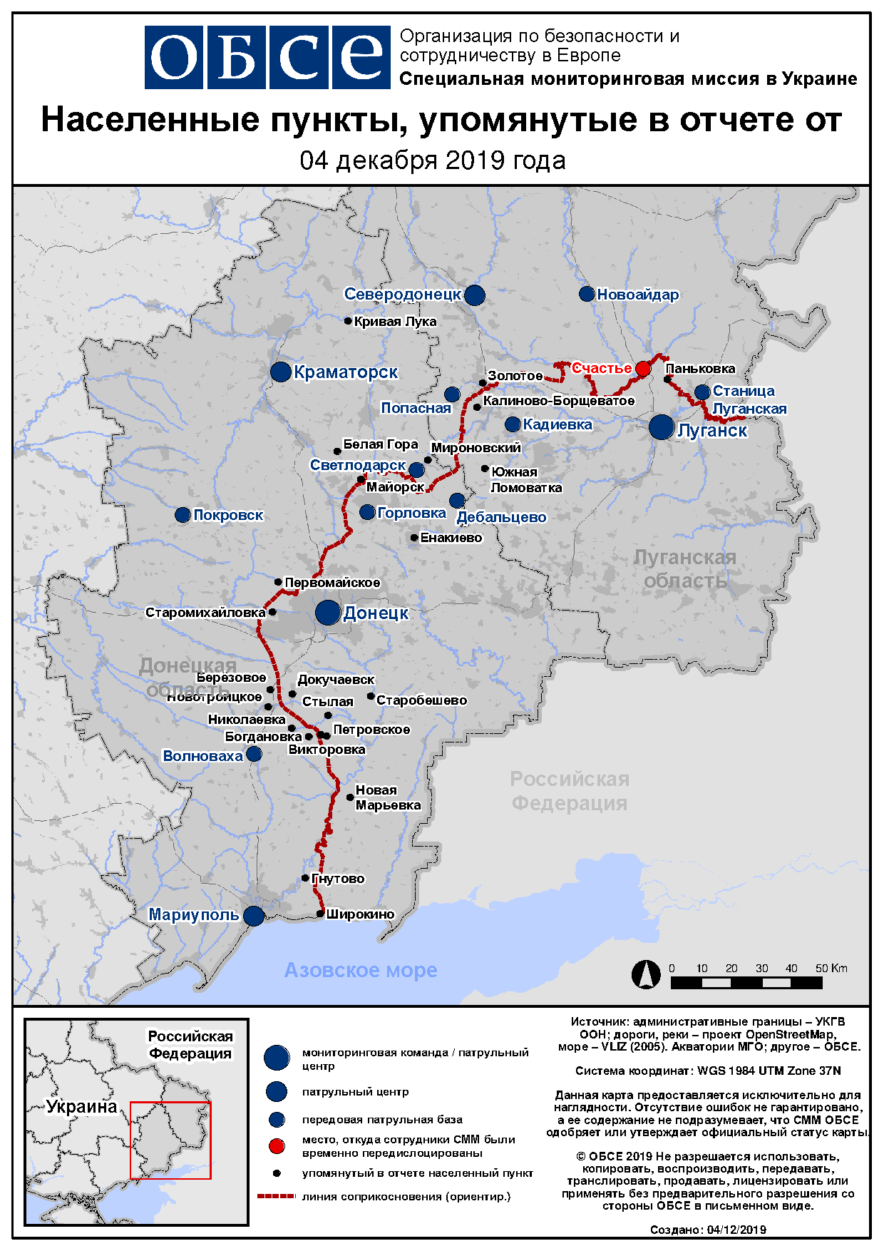 На основании информации, поступившей от мониторинговых команд по состоянию на 19:30 3 декабря 2019 года (по восточноевропейскому времени)
