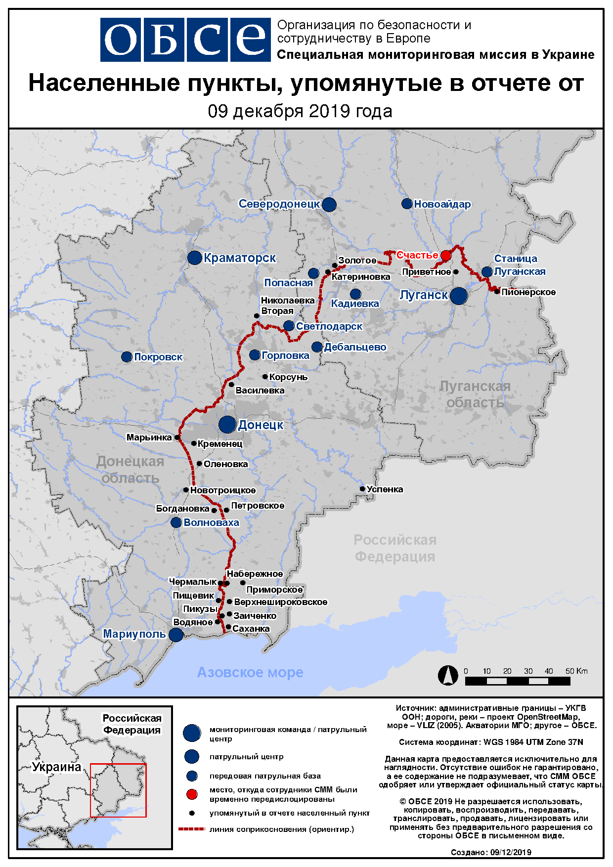 На основании информации, поступившей от мониторинговых команд по состоянию на 19:30 8 декабря 2019 года (по восточноевропейскому времени)