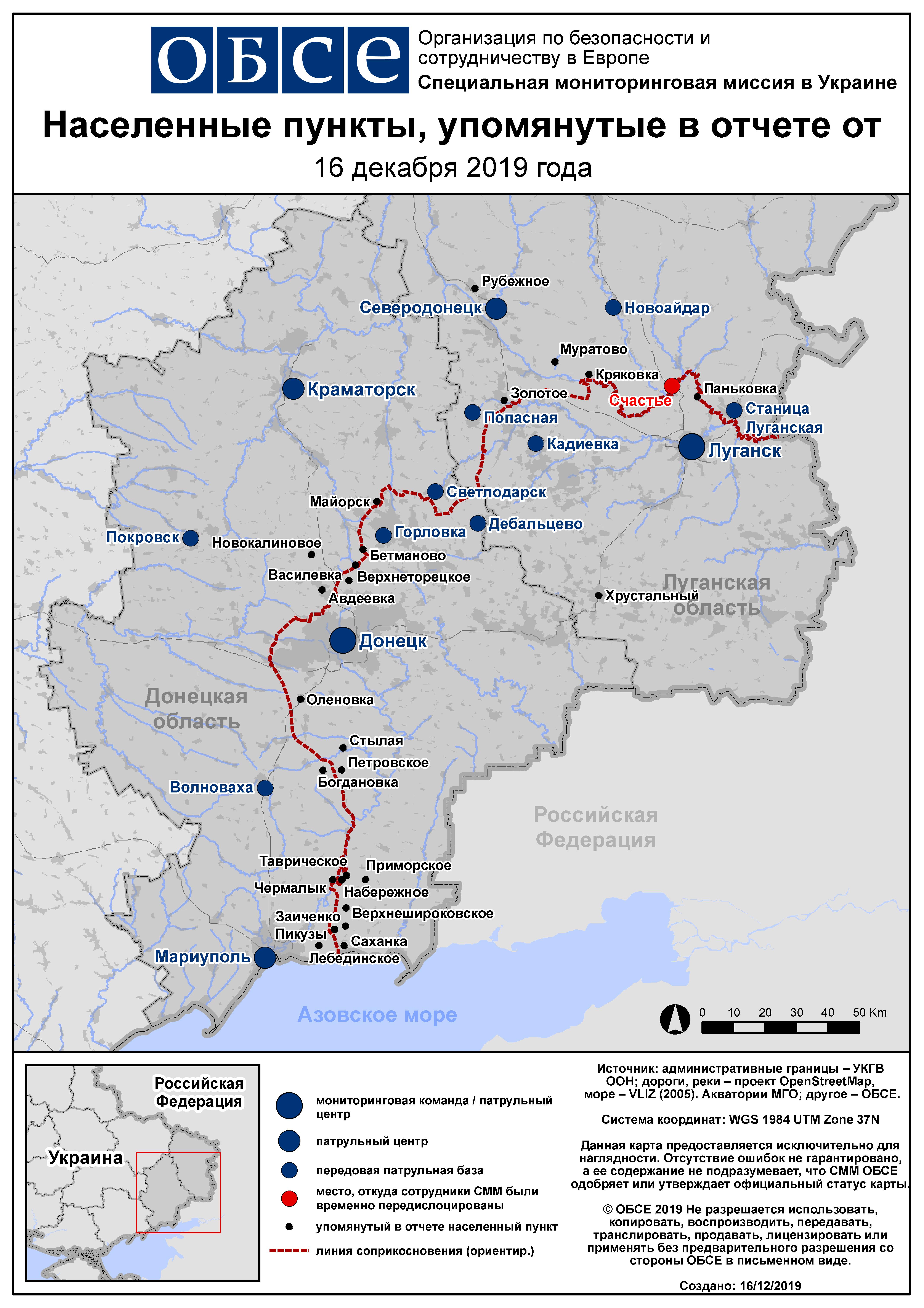 Ежедневный отчет № 297/2019, опубликованный Специальной мониторинговой миссией ОБСЕ в Украине (СММ) 16 декабря 2019 года