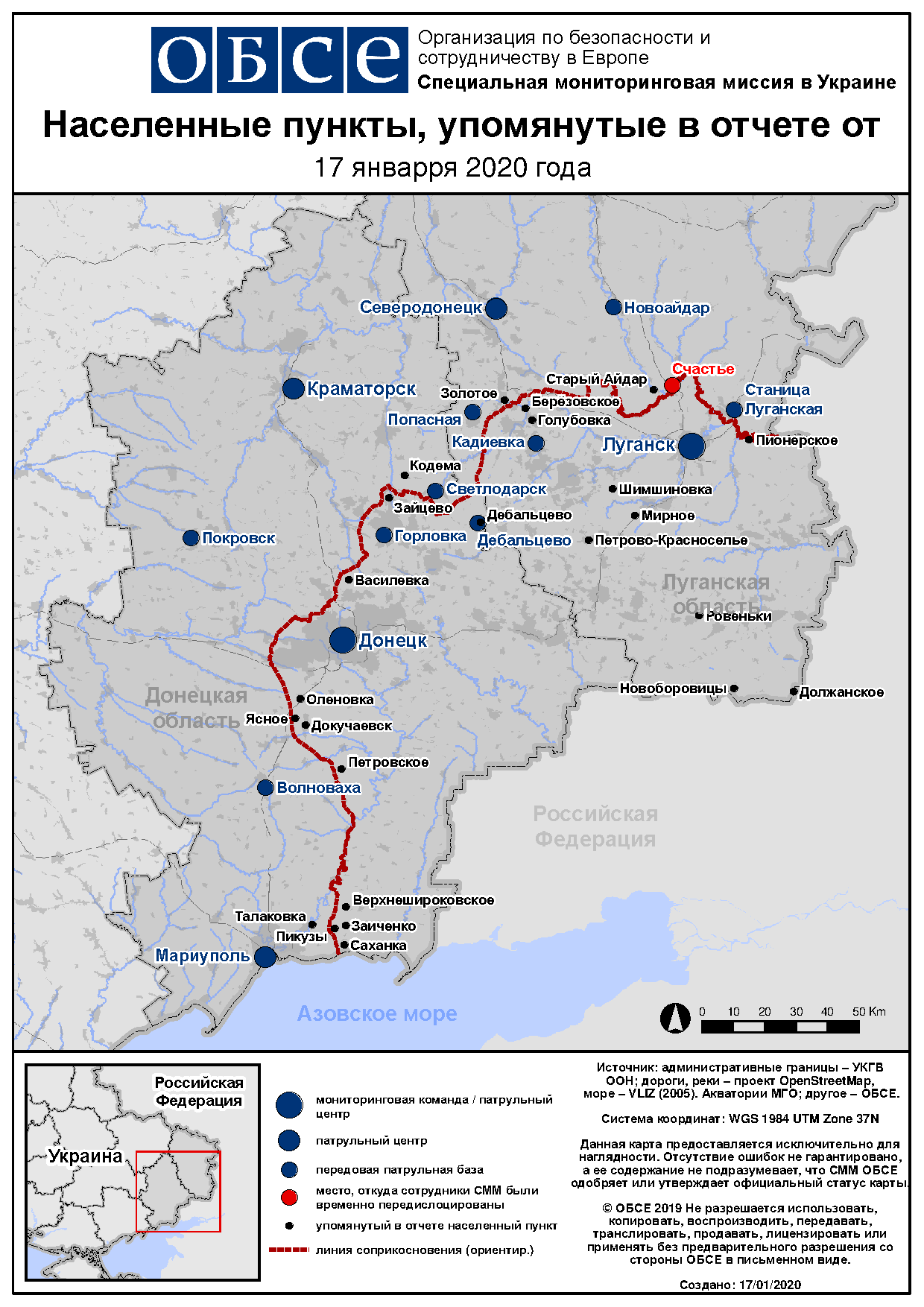 Ежедневный отчет № 13/2020, опубликованный Специальной мониторинговой миссией ОБСЕ в Украине (СММ) 17 января 2020 года