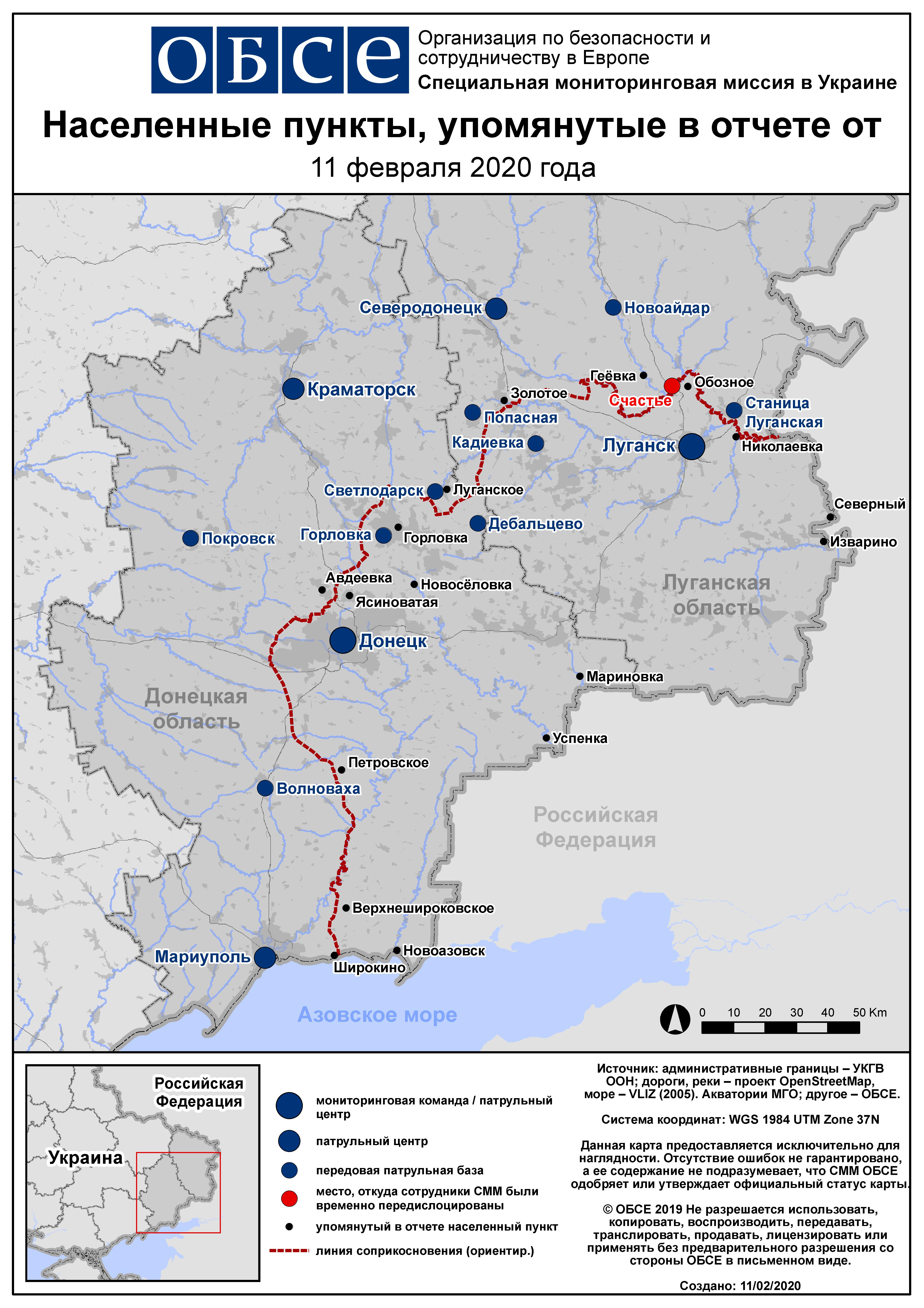 Ежедневный отчет № 34/2020, опубликованный Специальной мониторинговой миссией ОБСЕ в Украине (СММ) 11 февраля 2020 года