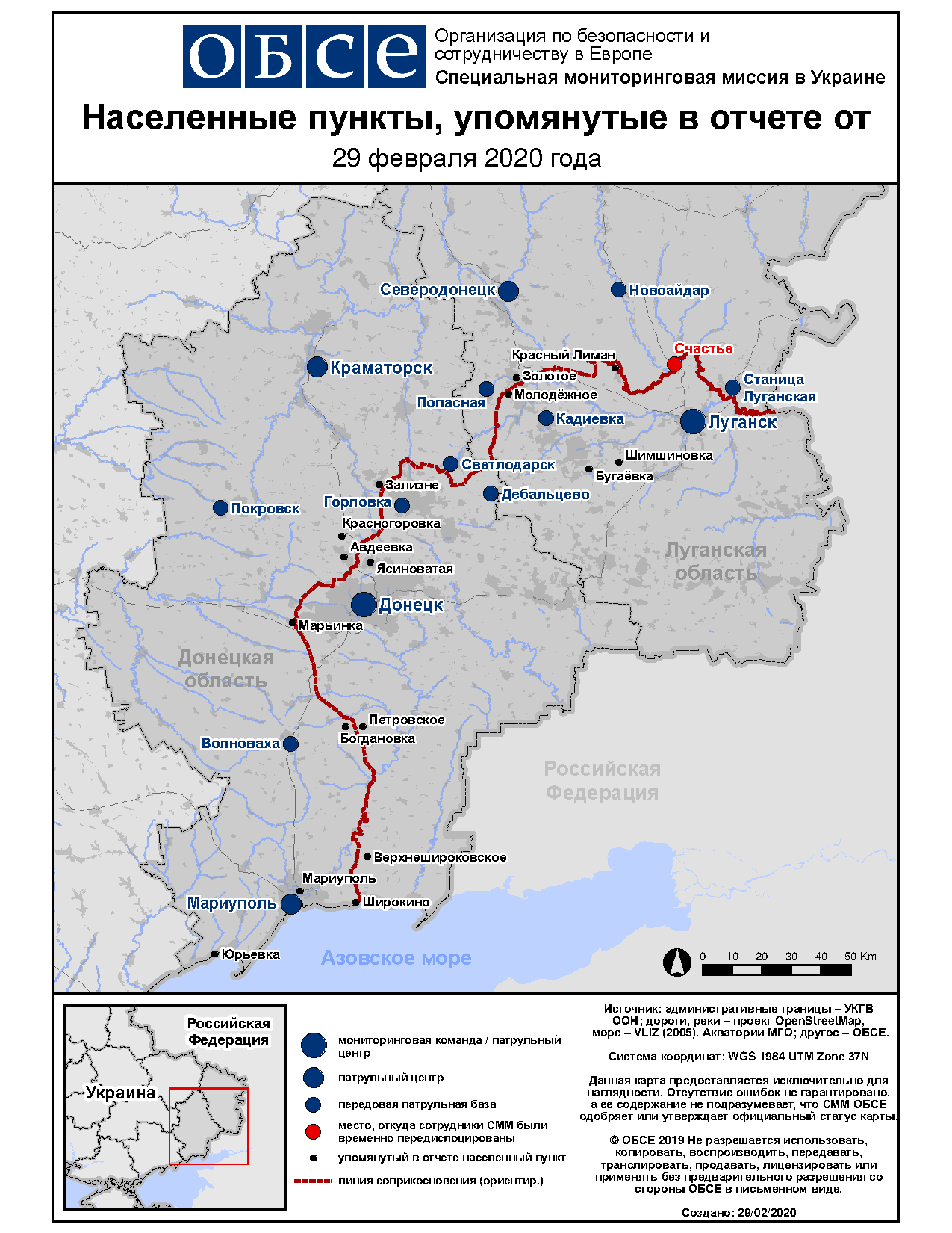 Ежедневный отчет № 50/2020, опубликованный Специальной мониторинговой миссией ОБСЕ в Украине (СММ) 29 февраля 2020 года
