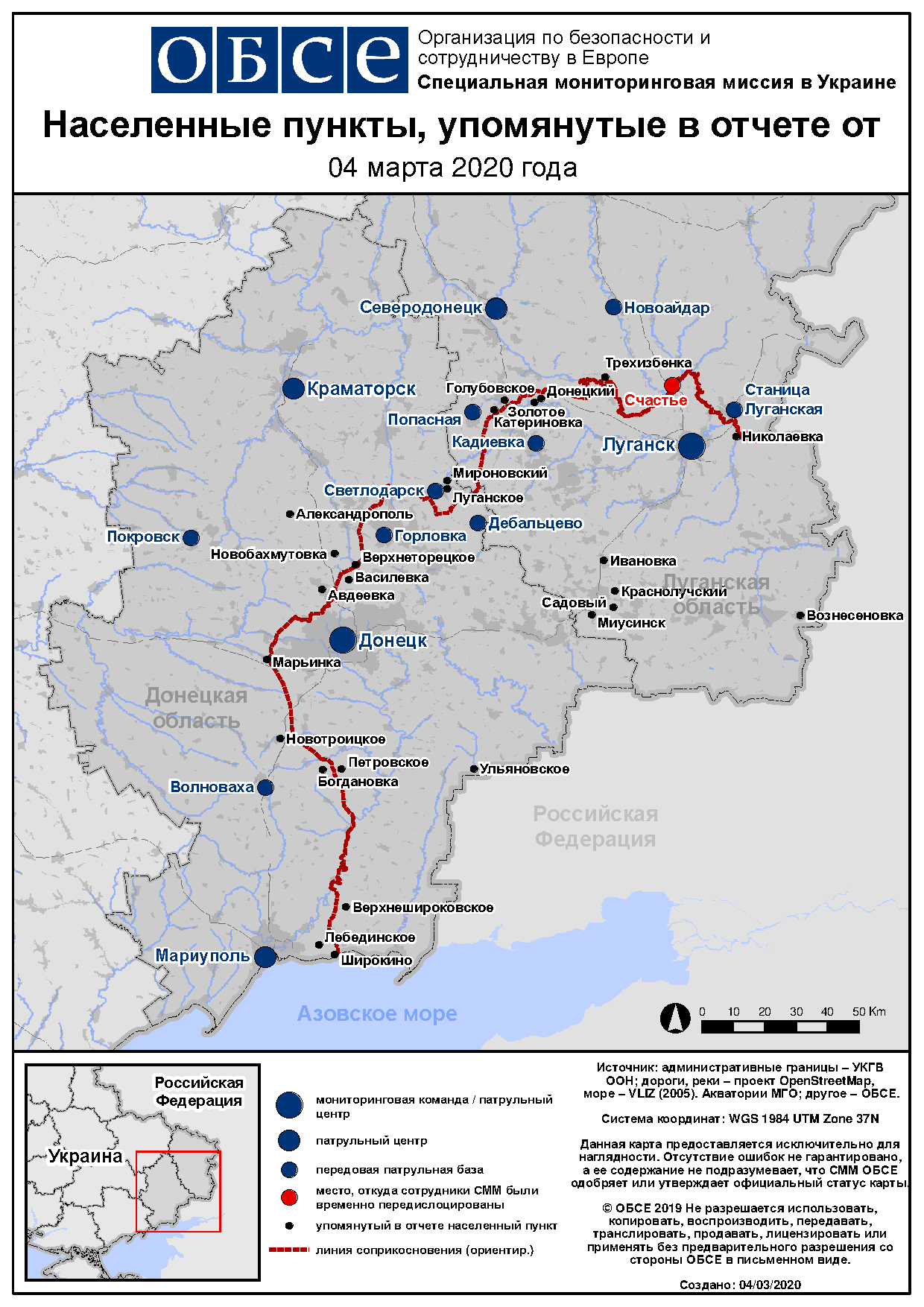 Ежедневный отчет № 53/2020, опубликованный Специальной мониторинговой миссией ОБСЕ в Украине (СММ) 4 марта 2020 года