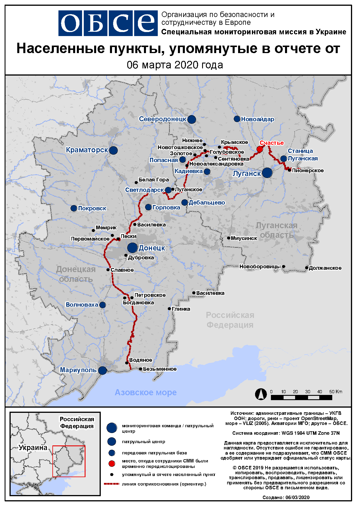 На основании информации, поступившей от мониторинговых команд по состоянию на 19:30 5 марта 2020 года (по восточноевропейскому времени)