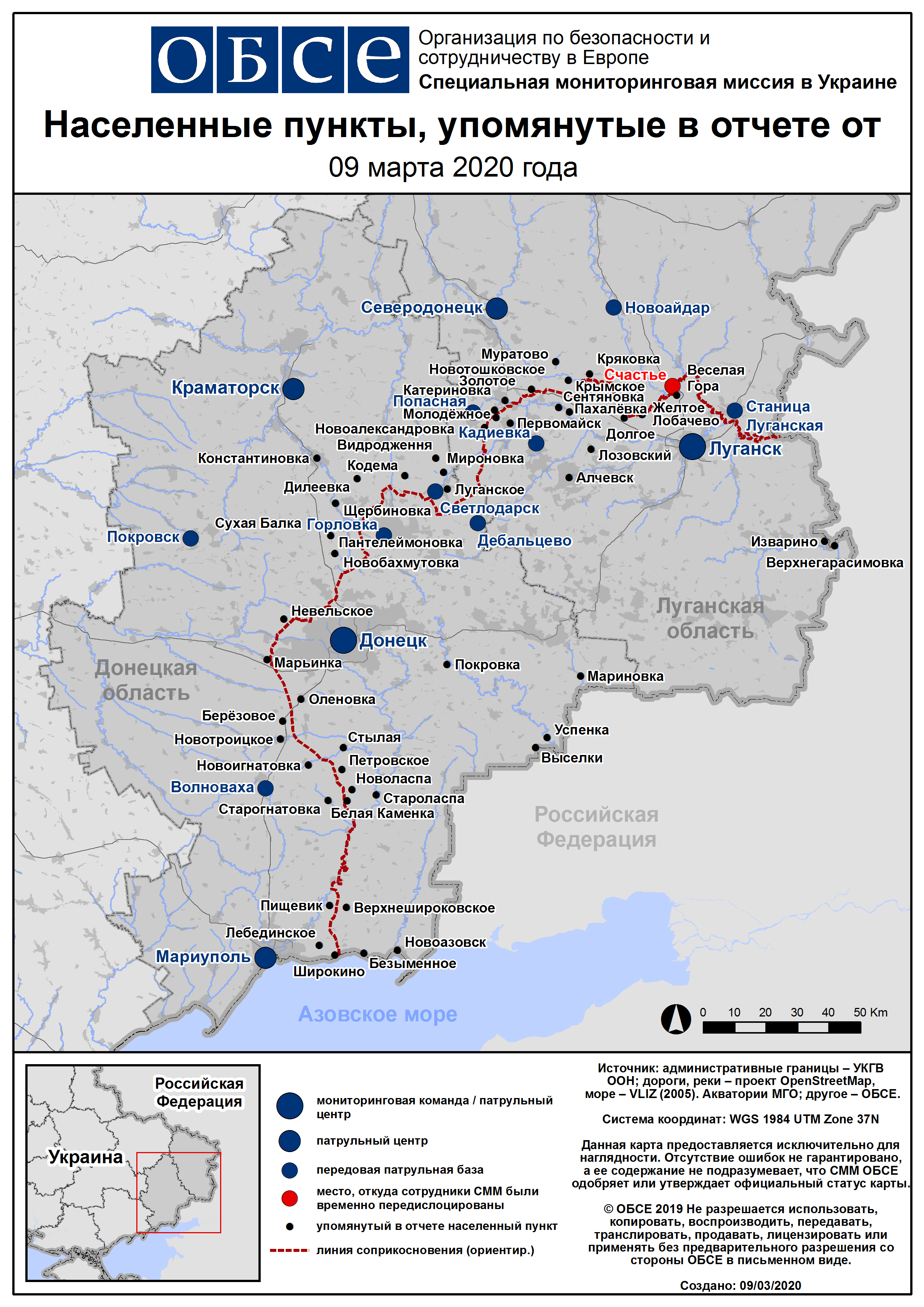 Ежедневный отчет № 57/2020, опубликованный Специальной мониторинговой миссией ОБСЕ в Украине (СММ) 9 марта 2020 года