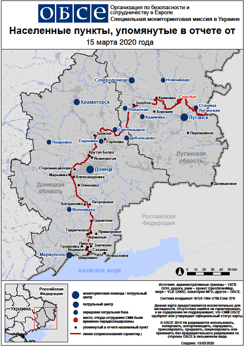 Ежедневный отчет № 62/2020, опубликованный Специальной мониторинговой миссией ОБСЕ в Украине (СММ) 14 марта 2020 года