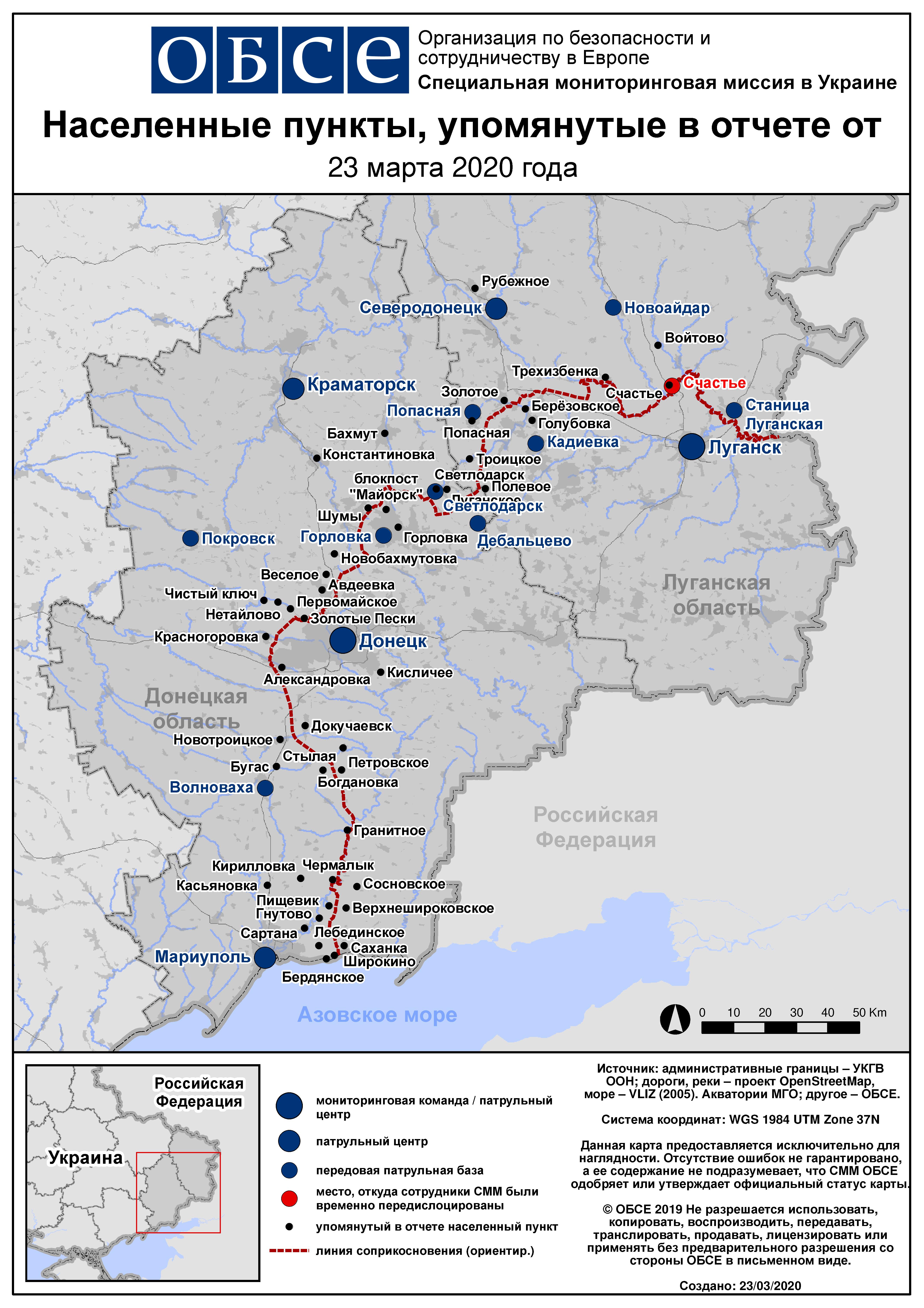Ежедневный отчет № 69/2020, опубликованный Специальной мониторинговой миссией ОБСЕ в Украине (СММ) 23 марта 2020 года