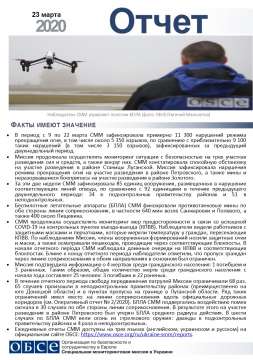 В отчете представлен обзор работы Специальной мониторинговой миссии ОБСЕ (СММ), последние события и новости по состоянию на 23 марта 2020 года.
