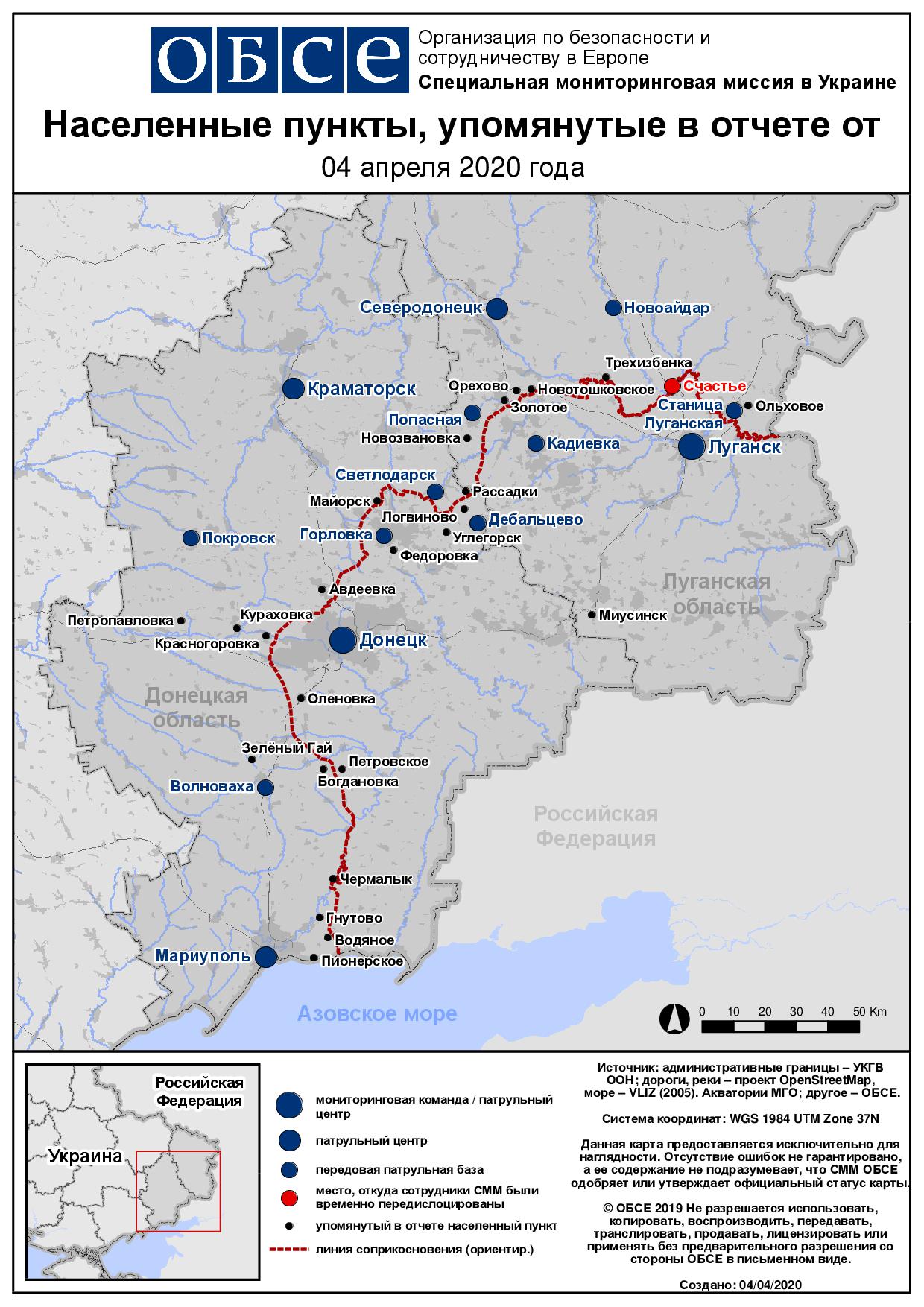 Ежедневный отчет № 80/2020, опубликованный Специальной мониторинговой миссией ОБСЕ в Украине (СММ) 4 апреля 2020 года