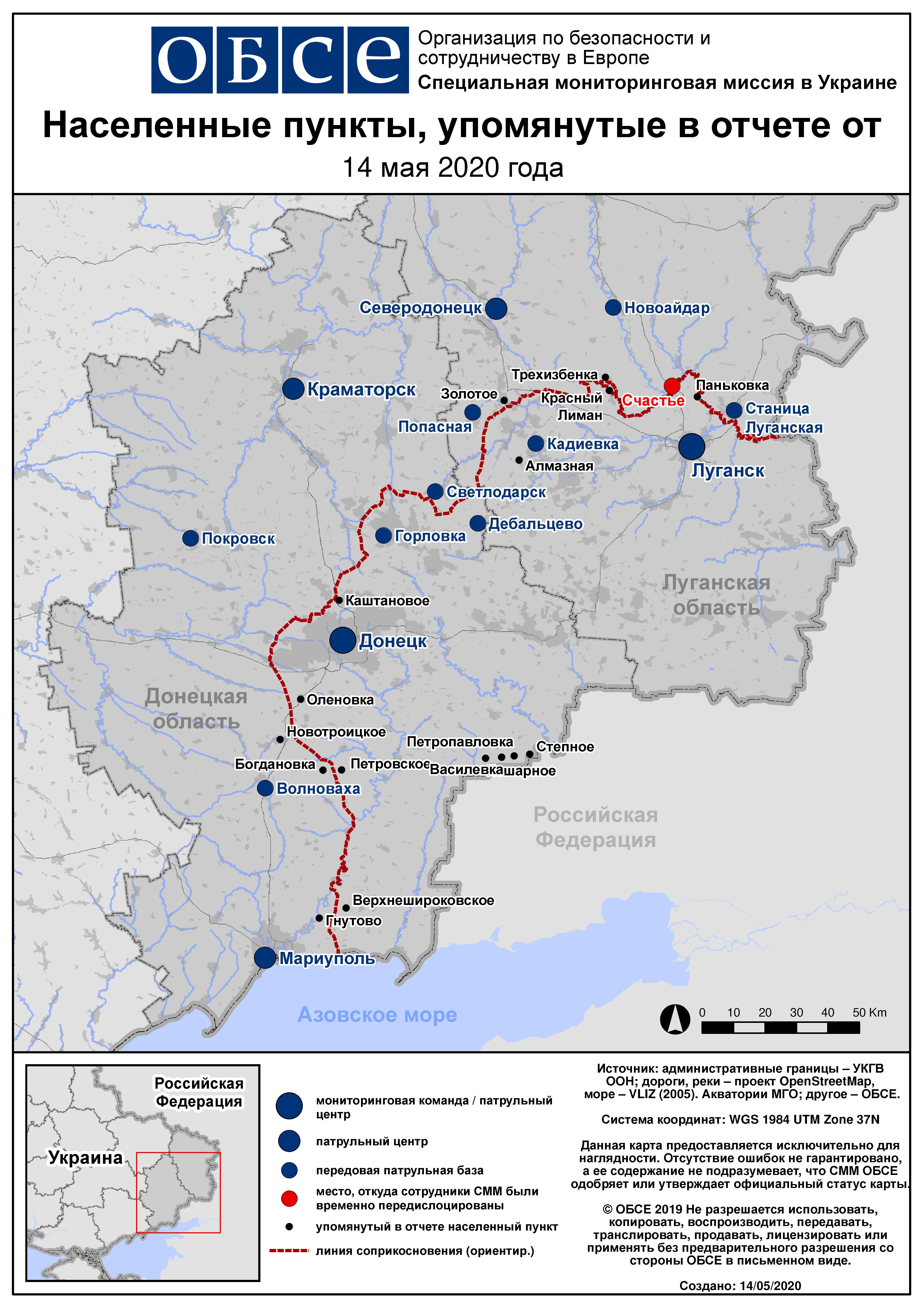 Ежедневный отчет № 114/2020, опубликованный Специальной мониторинговой миссией ОБСЕ в Украине (СММ) 14 мая 2020 года