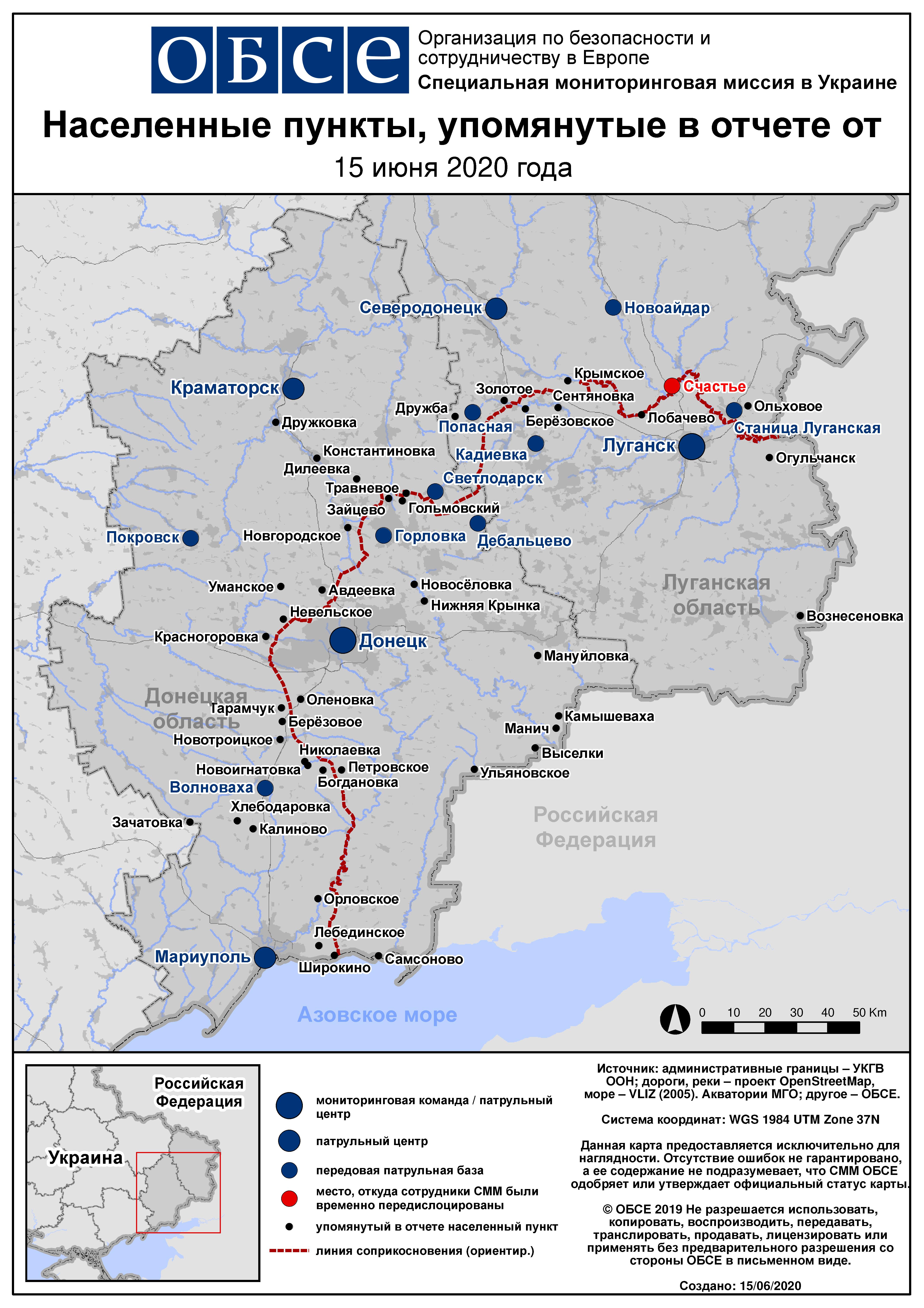 Ежедневный отчет № 141/2020, опубликованный Специальной мониторинговой миссией ОБСЕ в Украине (СММ) 15 июня 2020 года