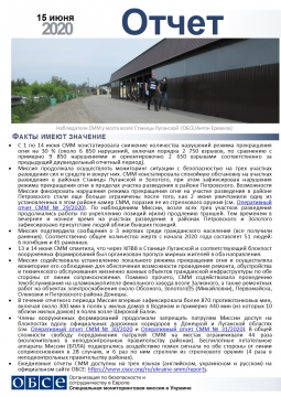 В отчете представлен обзор работы Специальной мониторинговой миссии ОБСЕ (СММ), последние события и новости по состоянию на 15 июня 2020 года.