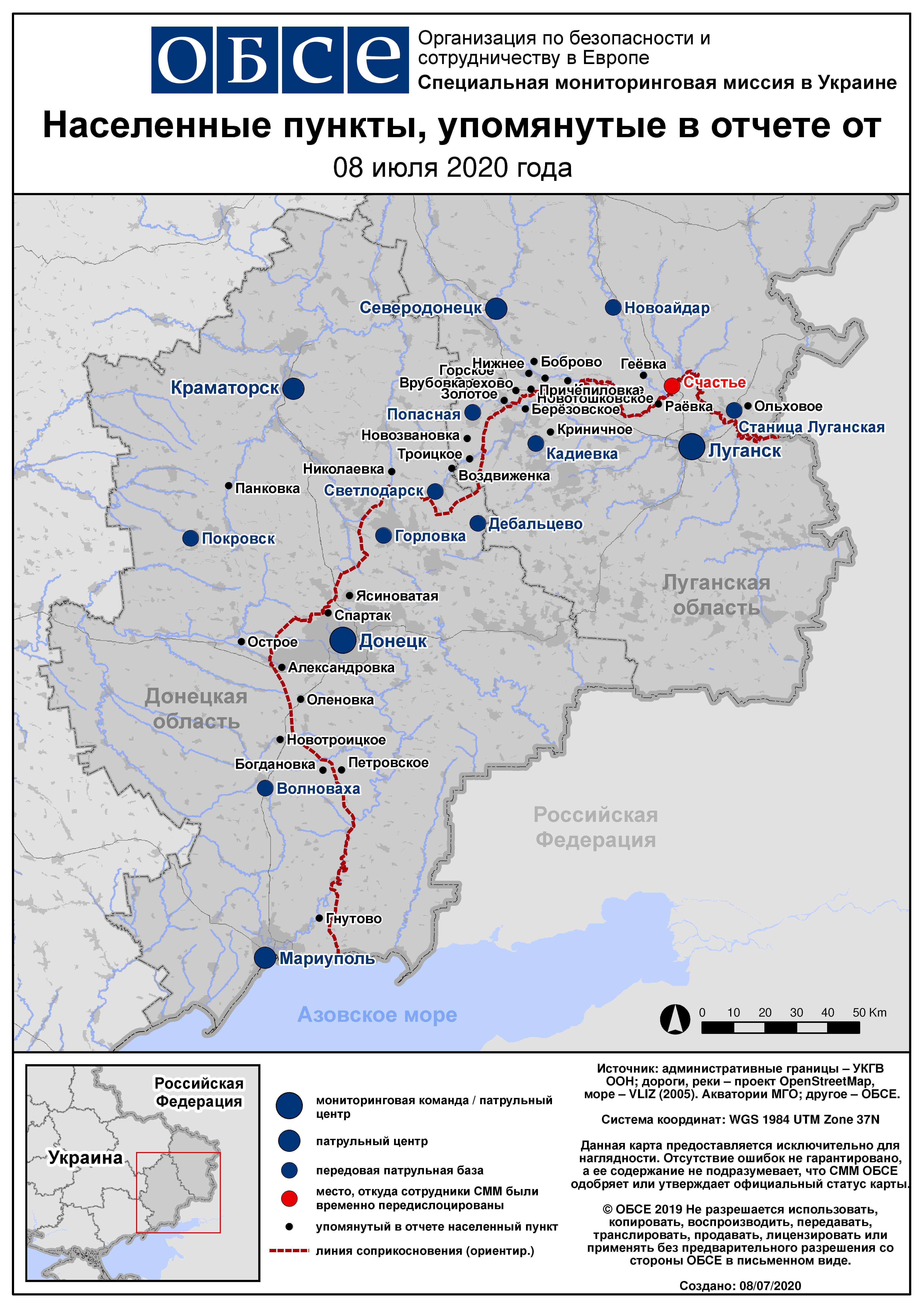 Ежедневный отчет № 161/2020, опубликованный Специальной мониторинговой миссией ОБСЕ в Украине (СММ) 8 июля 2020 года