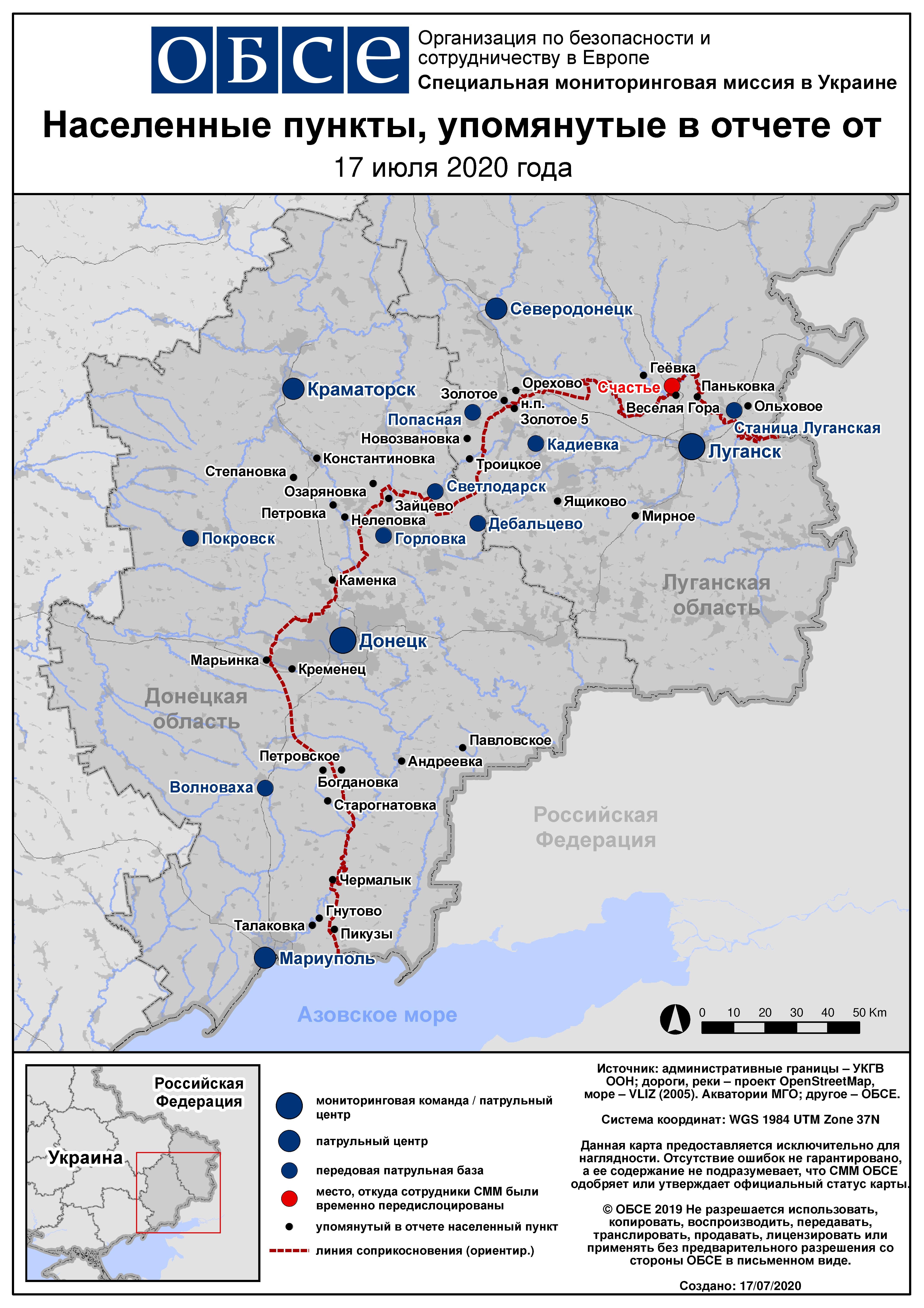 Ежедневный отчет № 169/2020, опубликованный Специальной мониторинговой миссией ОБСЕ в Украине (СММ) 17 июля 2020 года