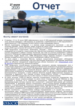 В отчете представлен обзор работы Специальной мониторинговой миссии ОБСЕ (СММ), последние события и новости по состоянию на 27 июля 2020 года.