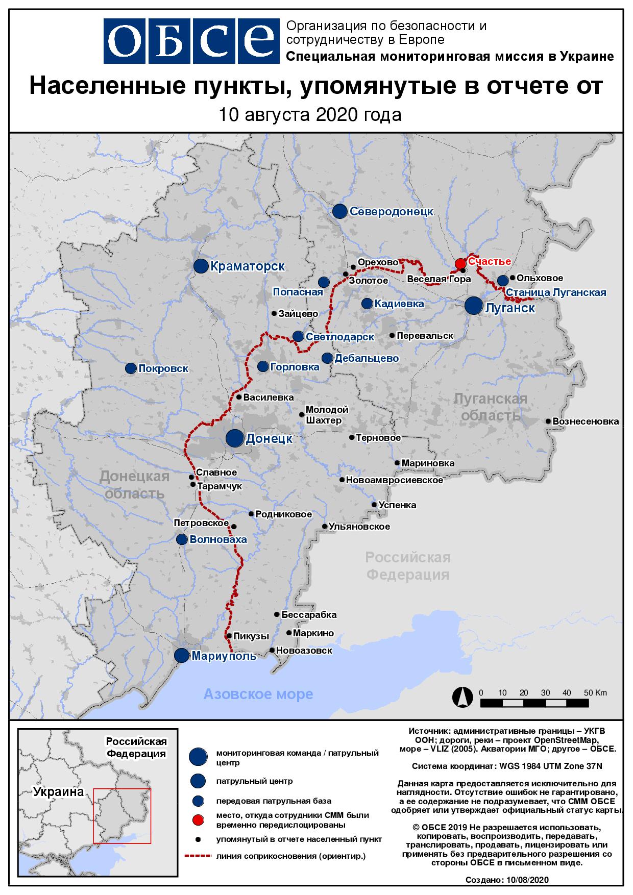 Ежедневный отчет № 189/2020, опубликованный Специальной мониторинговой миссией ОБСЕ в Украине (СММ) 10 августа 2020 года