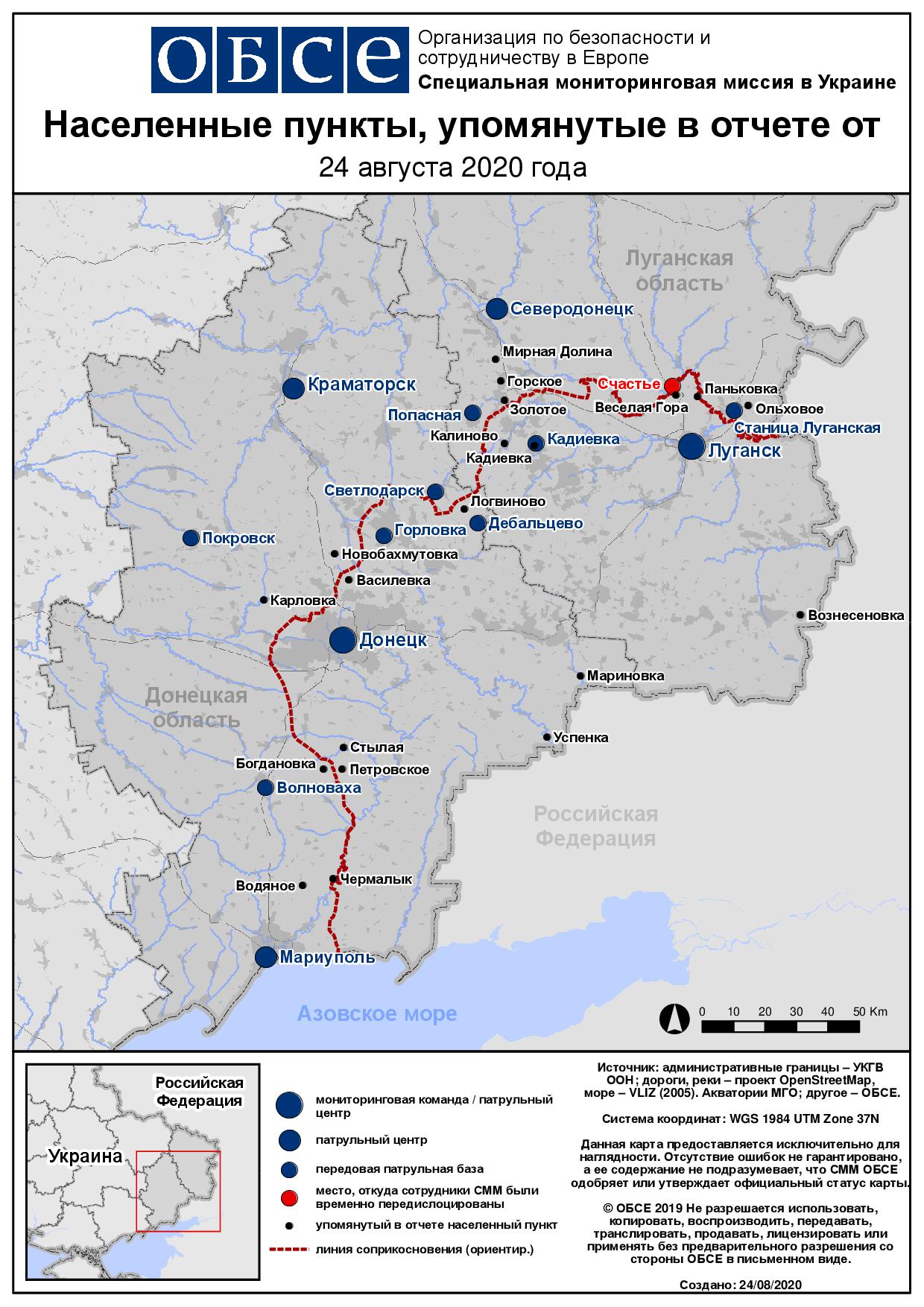 Ежедневный отчет № 201/2020, опубликованный Специальной мониторинговой миссией ОБСЕ в Украине (СММ) 24 августа 2020 года