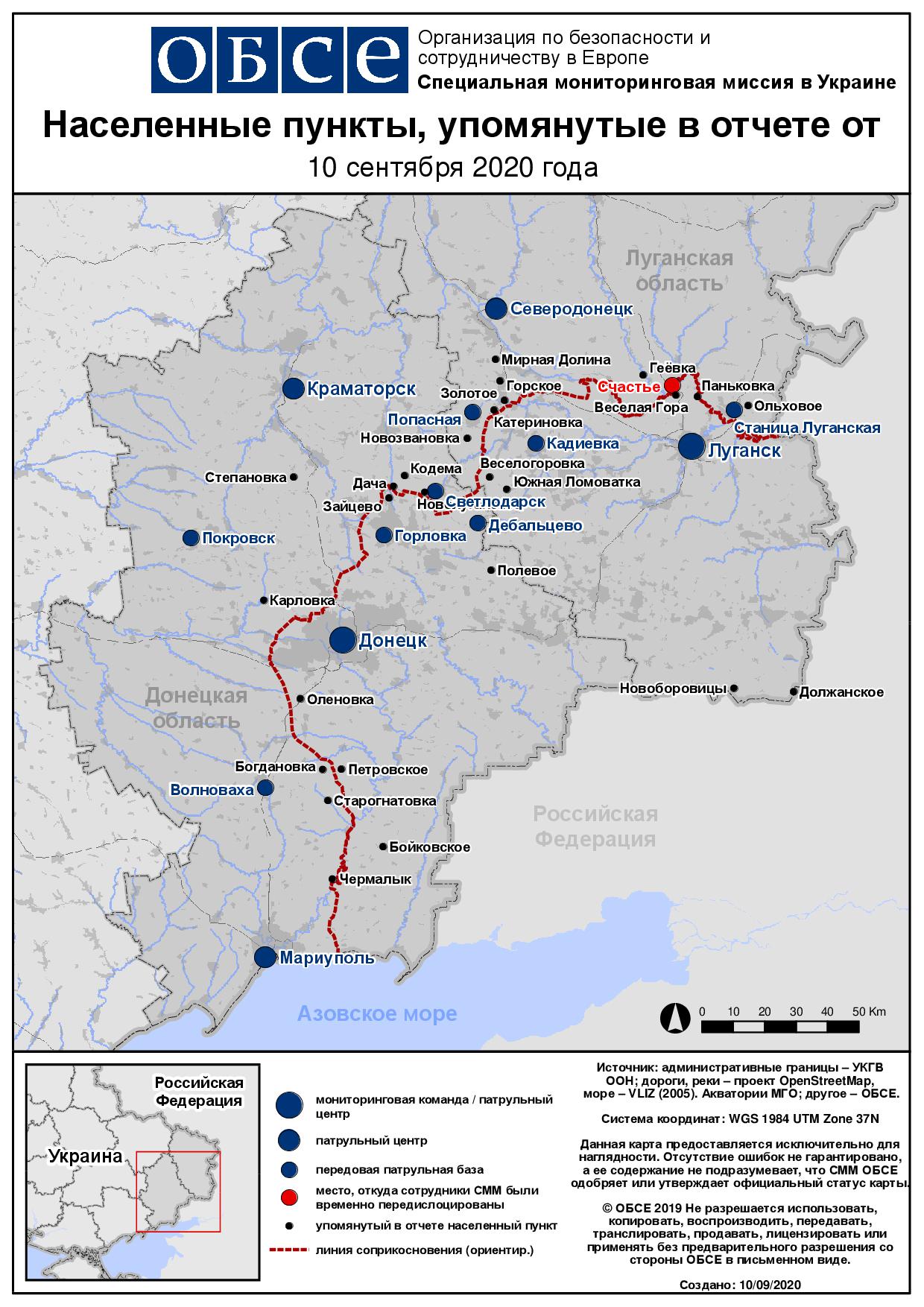 Ежедневный отчет № 216/2020, опубликованный Специальной мониторинговой миссией ОБСЕ в Украине (СММ) 10 сентября 2020 года