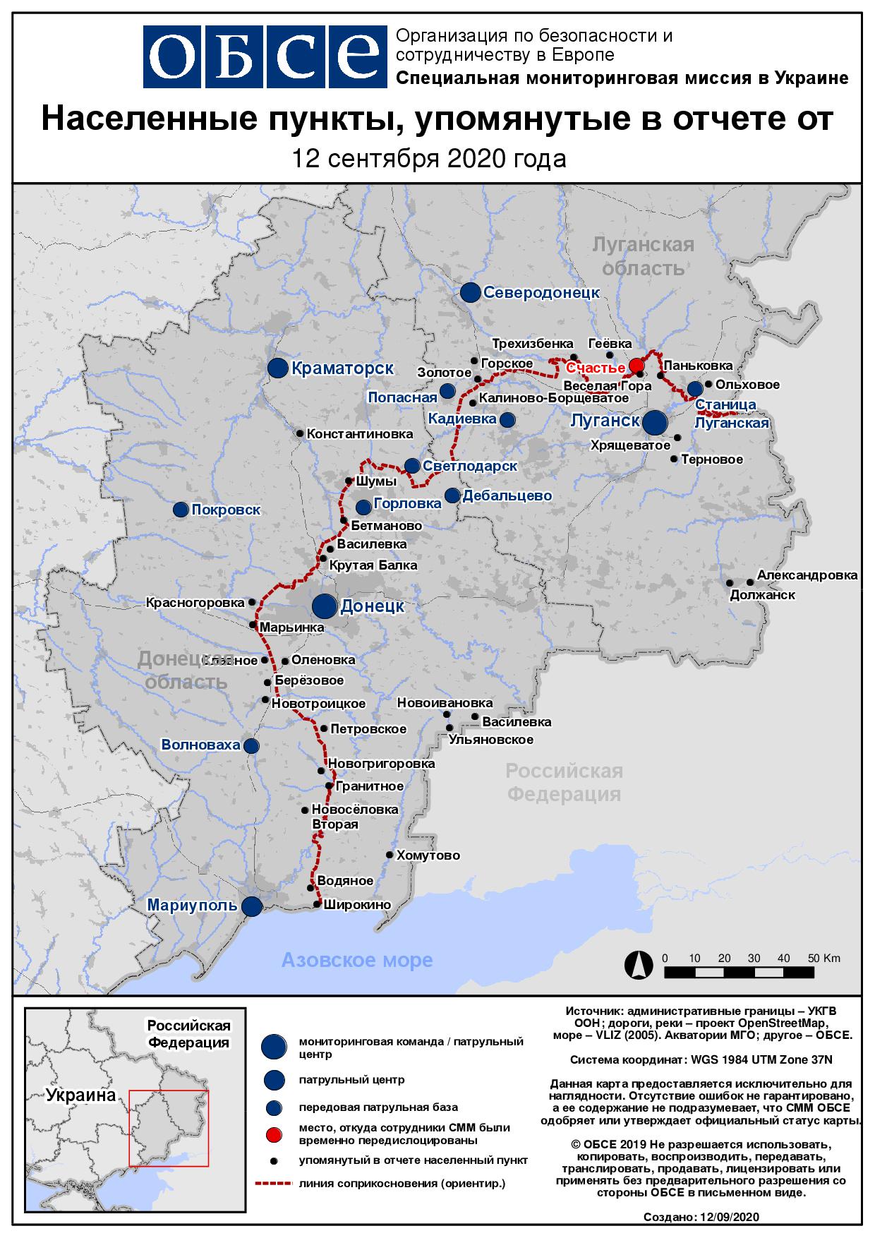 Ежедневный отчет № 218/2020, опубликованный Специальной мониторинговой миссией ОБСЕ в Украине (СММ) 12 сентября 2020 года
