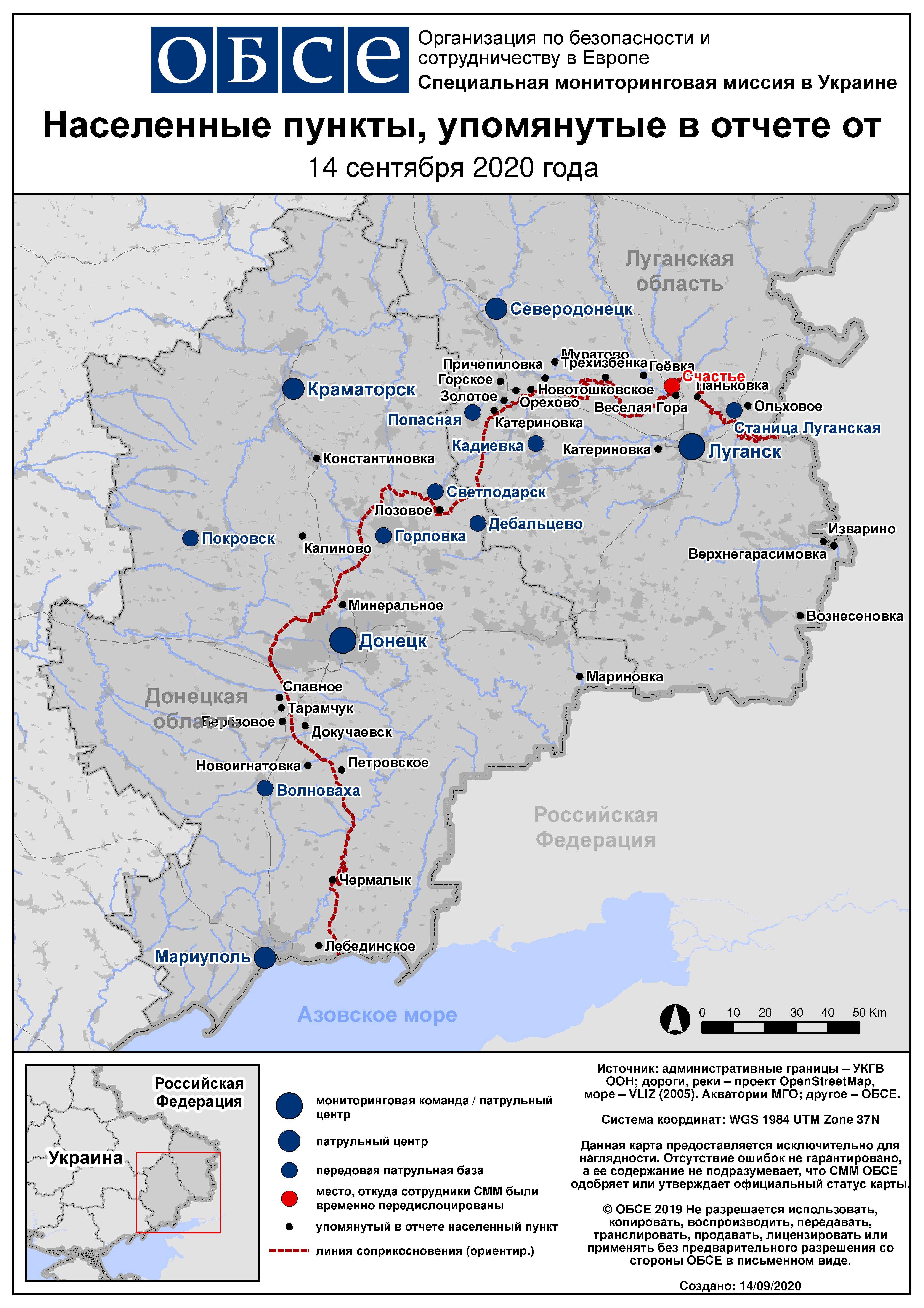 Ежедневный отчет № 219/2020, опубликованный Специальной мониторинговой миссией ОБСЕ в Украине (СММ) 14 сентября 2020 года