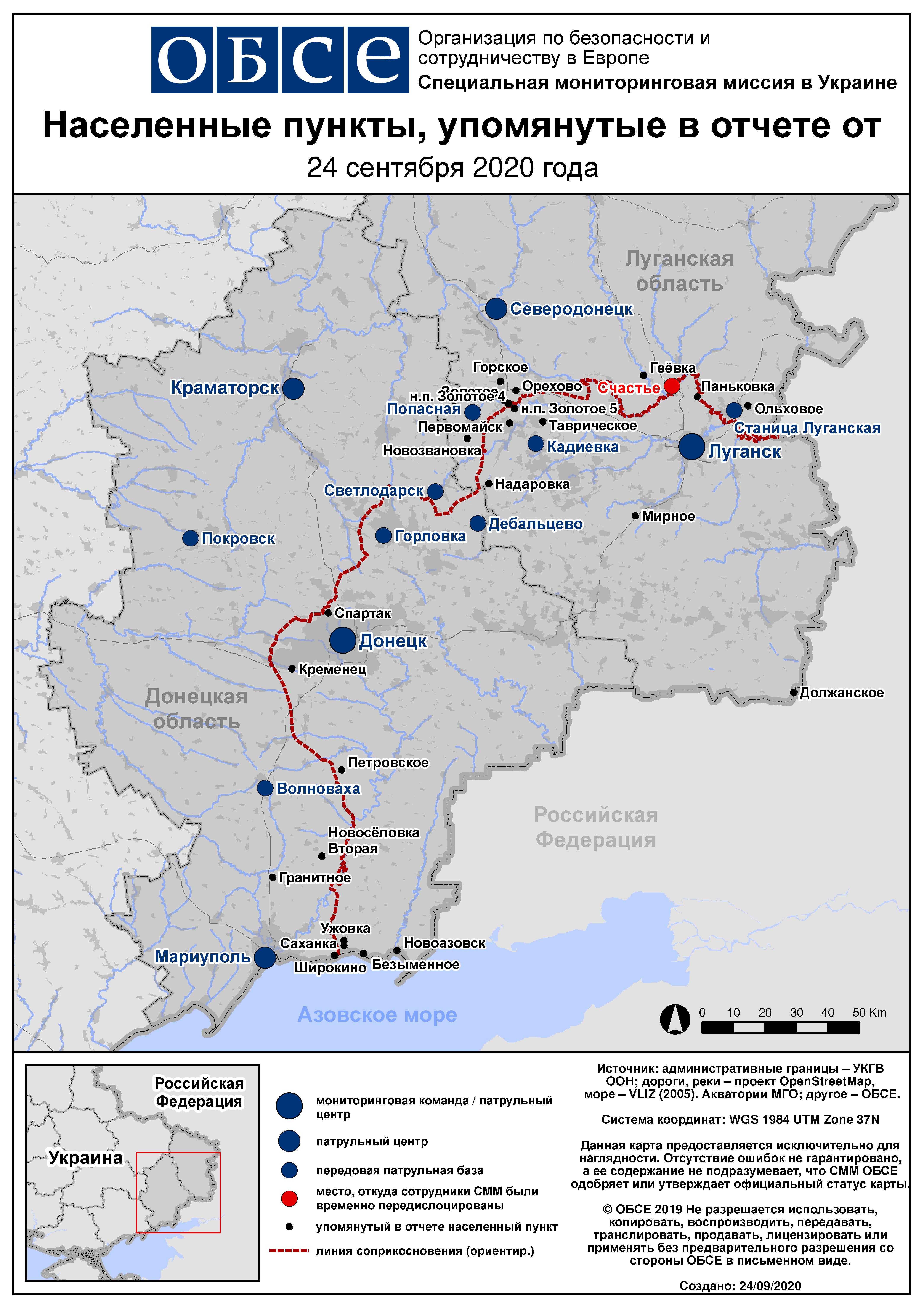 Ежедневный отчет № 228/2020, опубликованный Специальной мониторинговой миссией ОБСЕ в Украине (СММ) 24 сентября 2020 года