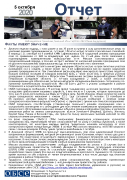 В отчете представлен обзор работы Специальной мониторинговой миссии ОБСЕ (СММ), последние события и новости по состоянию на 5 октября 2020 года.