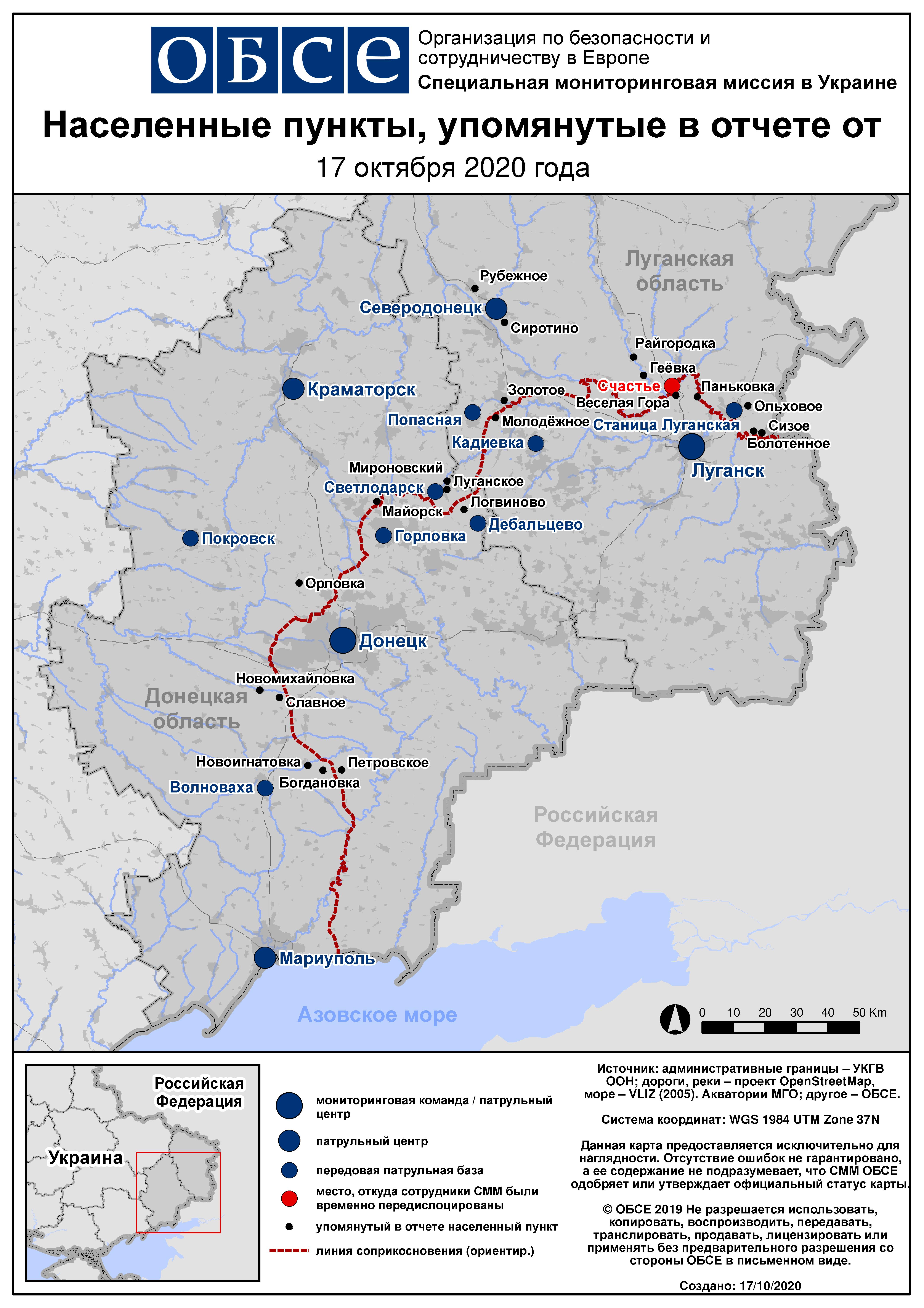 Ежедневный отчет № 248/2020, опубликованный Специальной мониторинговой миссией ОБСЕ в Украине (СММ) 17 октября 2020 года