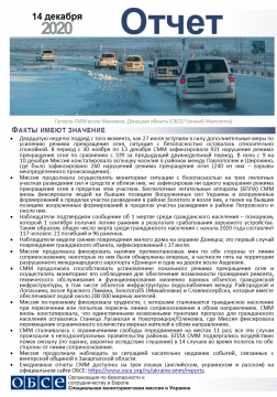 В отчете представлен обзор работы Специальной мониторинговой миссии ОБСЕ (СММ), последние события и новости по состоянию на 14 декабря 2020 года.
