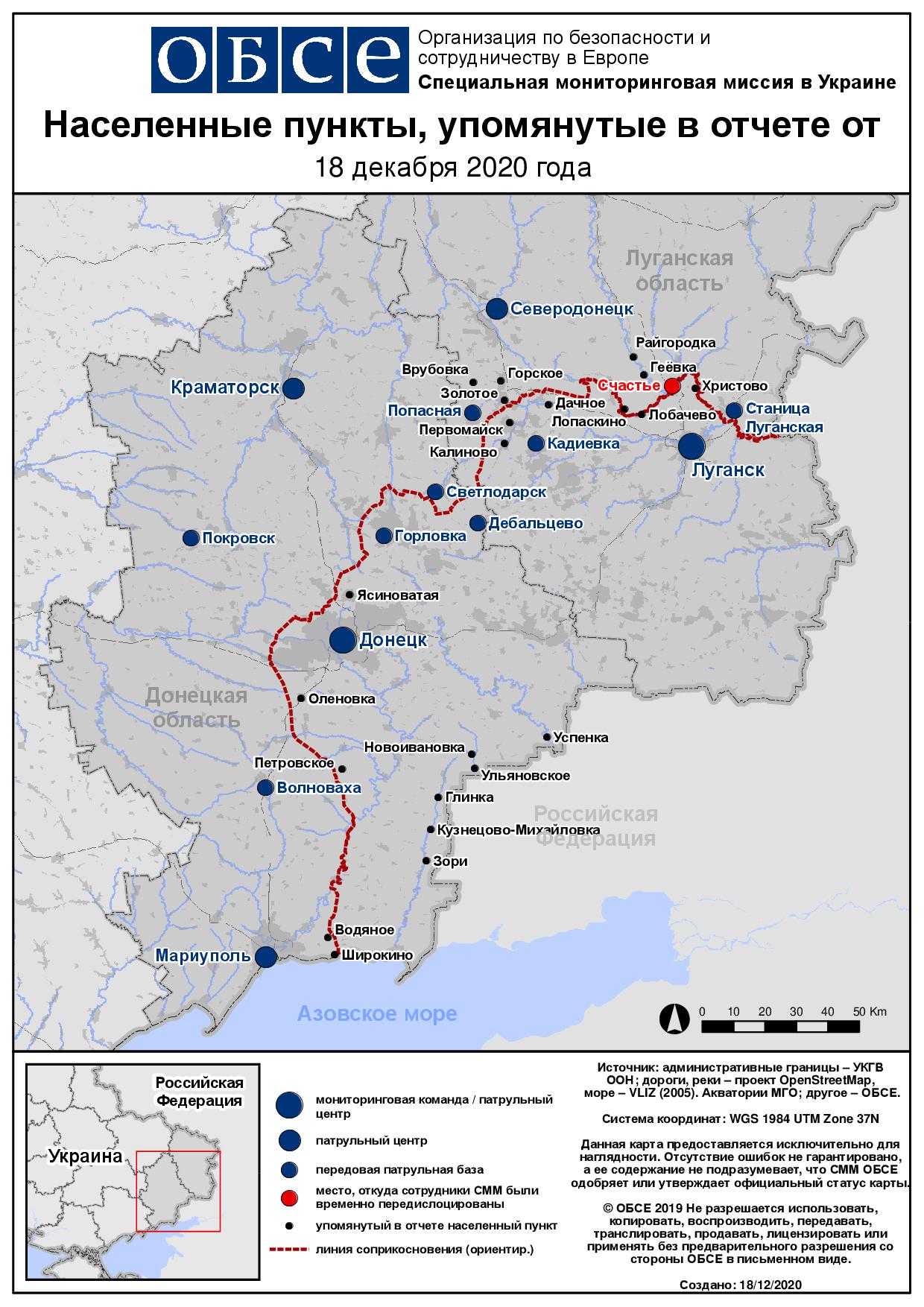 Ежедневный отчет № 301/2020, опубликованный Специальной мониторинговой миссией ОБСЕ в Украине (СММ) 18 декабря 2020 года