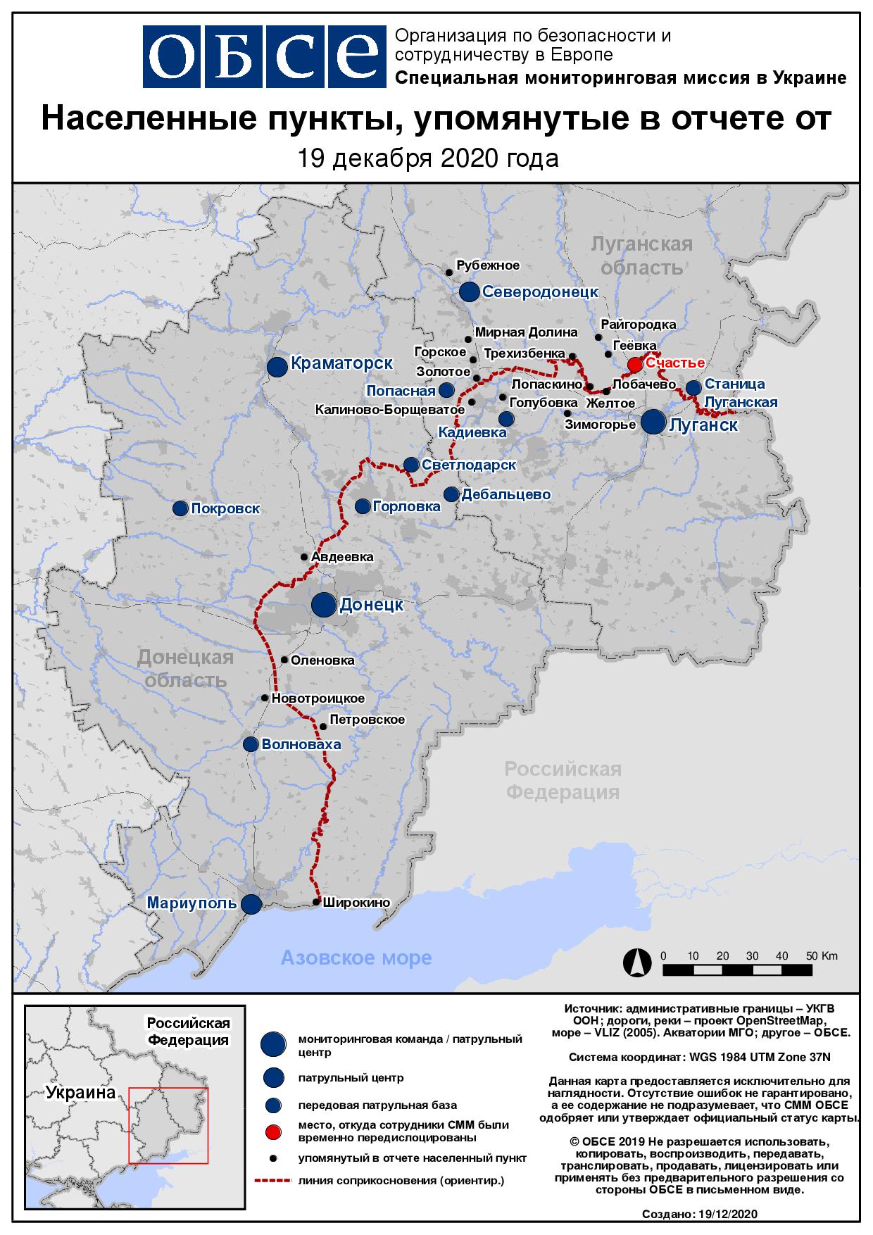 Ежедневный отчет № 302/2020, опубликованный Специальной мониторинговой миссией ОБСЕ в Украине (СММ) 19 декабря 2020 года