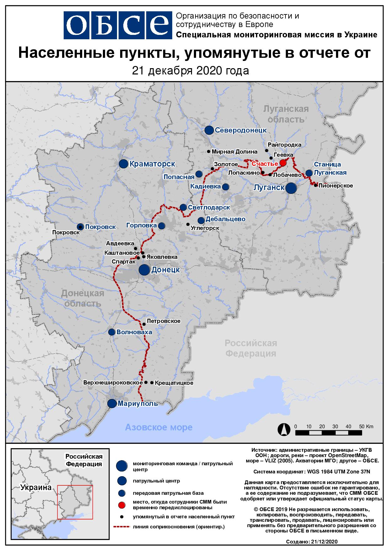 Ежедневный отчет № 303/2020, опубликованный Специальной мониторинговой миссией ОБСЕ в Украине (СММ) 21 декабря 2020 года