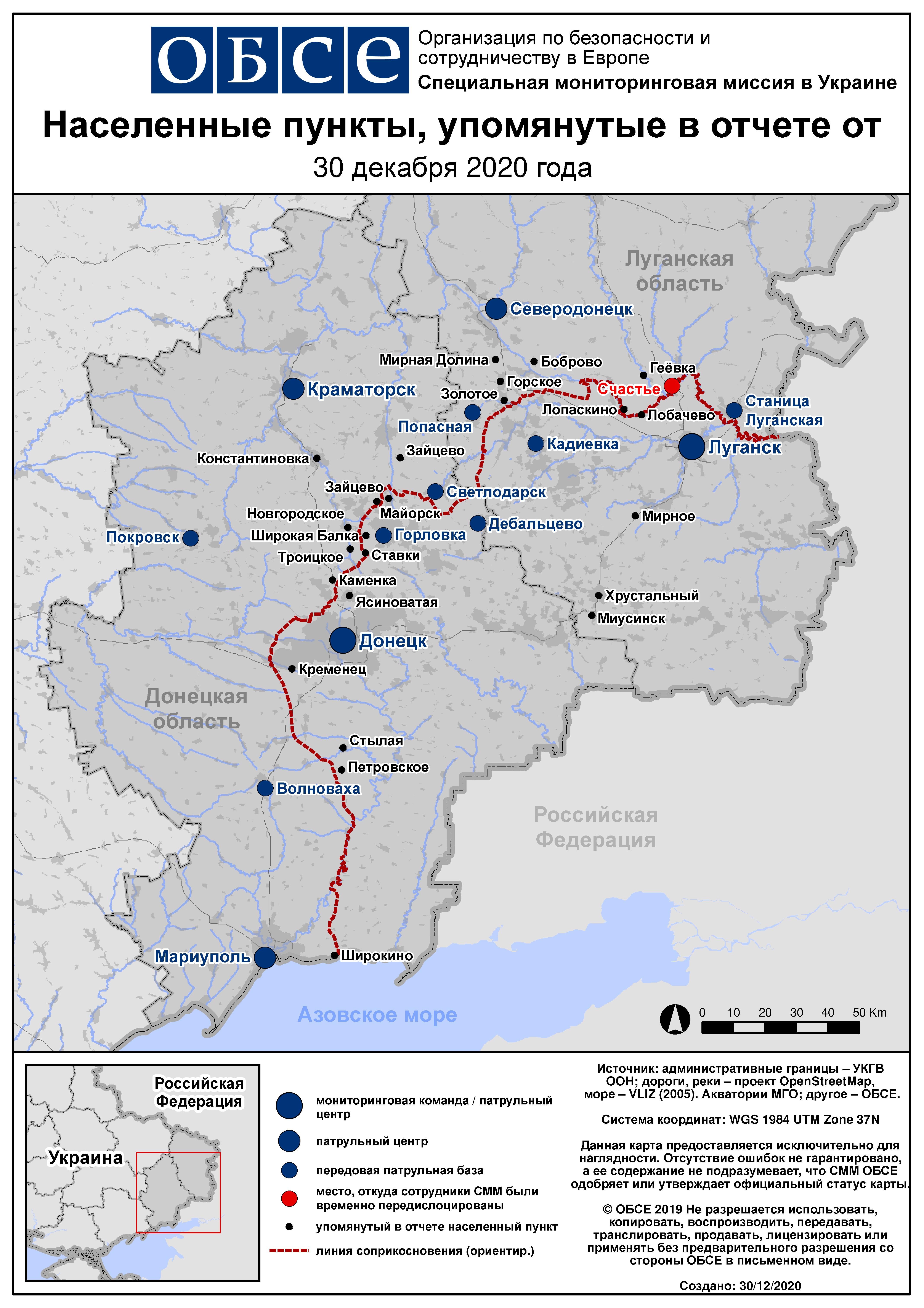 Ежедневный отчет № 309/2020, опубликованный Специальной мониторинговой миссией ОБСЕ в Украине (СММ) 30 декабря 2020 года
