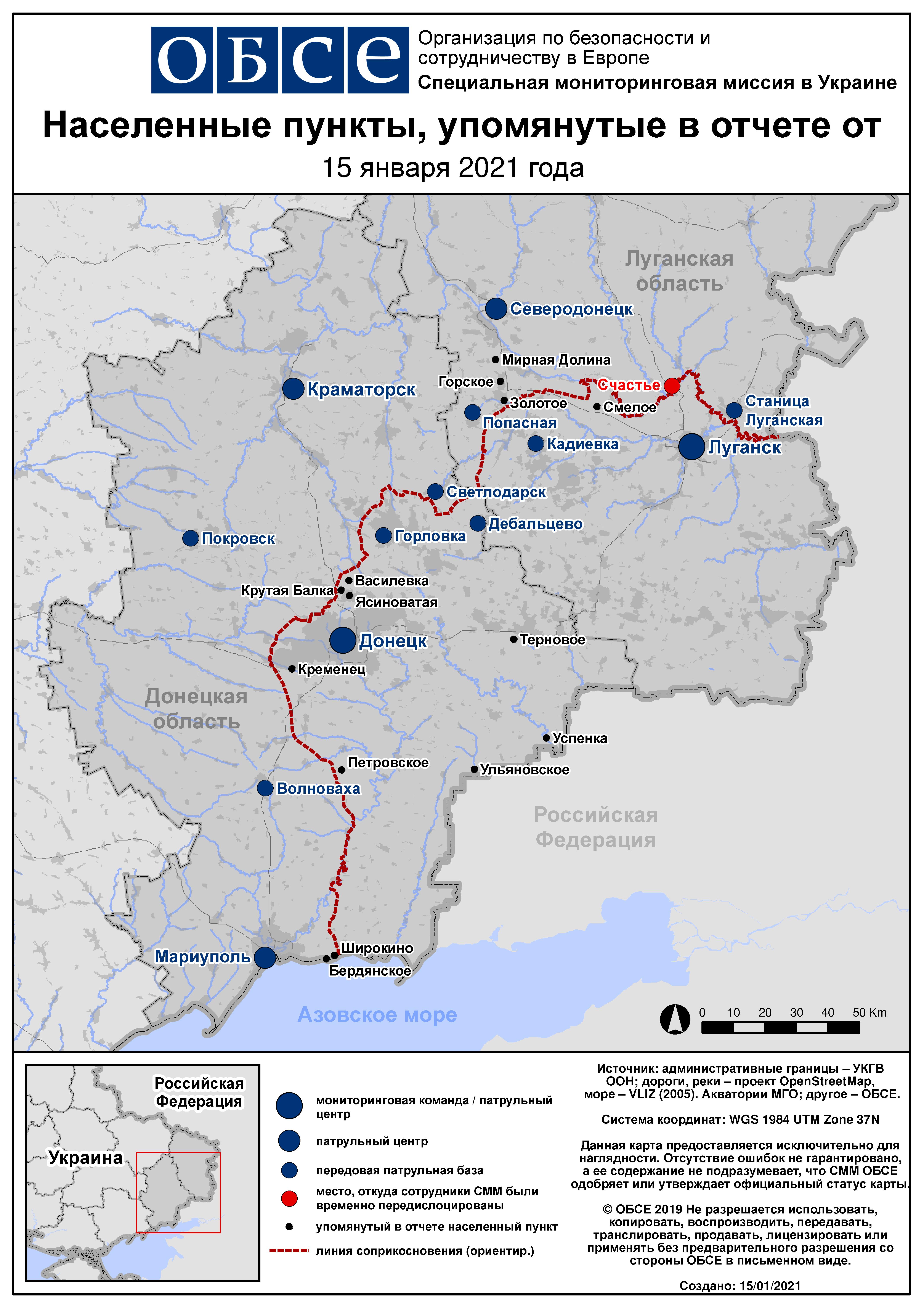 Ежедневный отчет № 10/2021, опубликованный Специальной мониторинговой миссией ОБСЕ в Украине (СММ) 15 января 2021 года
